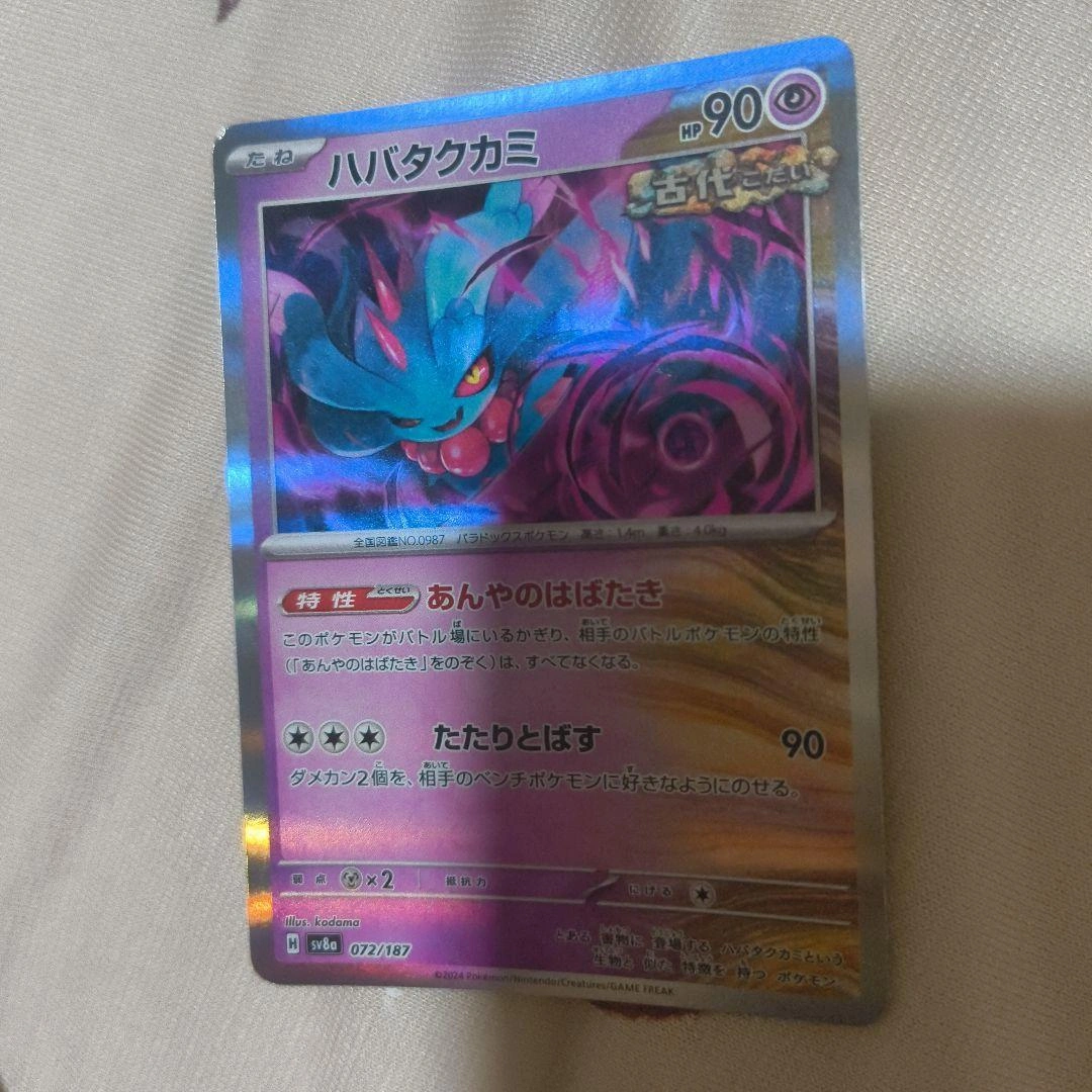 ハバタクカミの90HPカードです。特別な技を持っています。 - カード名: ハバタクカミ - HP: 90 - 技名: あんやのはなたき - 技名: たたらとばす - カード番号: 072/189 ご覧いただきありがとうございます。 種別...シングルカード ご希望の方はお気軽にご連絡ください。