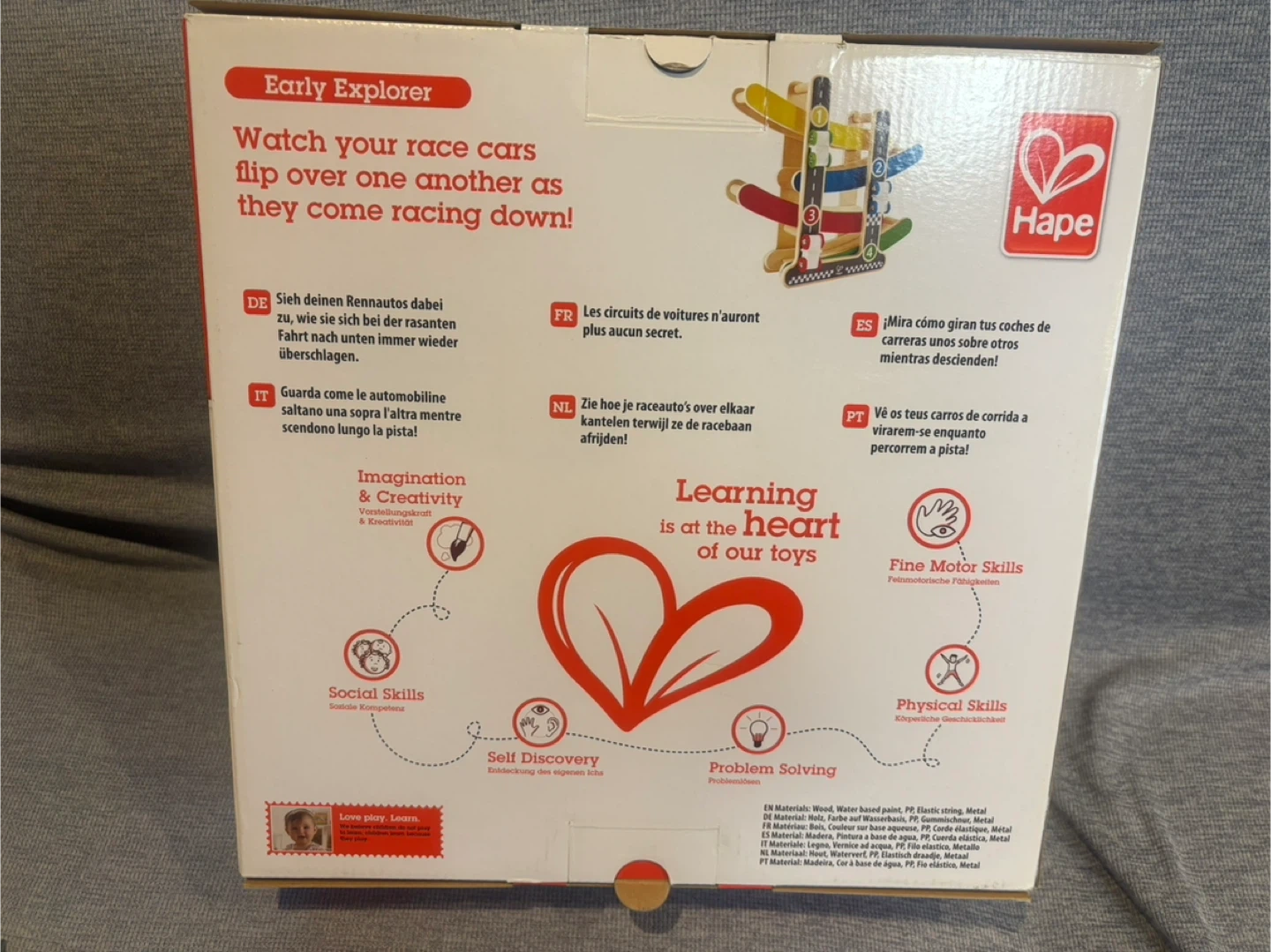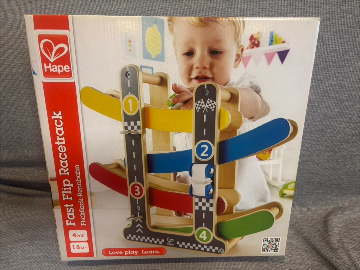 HapeのFast Flip Racetrackです。 ・おもちゃ本体と車3台のセット ・対象年齢:18ヶ月以上 ・使用感少なめ お祝いで頂いた物ですがあまり使用してないです。 保管にともなう多少の劣化はあり 中古品であることをご了承ください。 中古品である事をご理解の上写真の状態を優先としノーリタン・ノークレーム ご理解ご納得頂ける方のご連絡お待ちしております