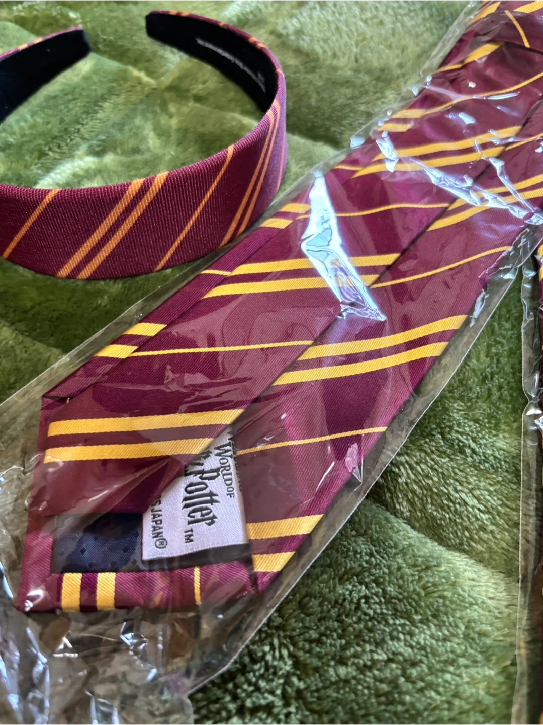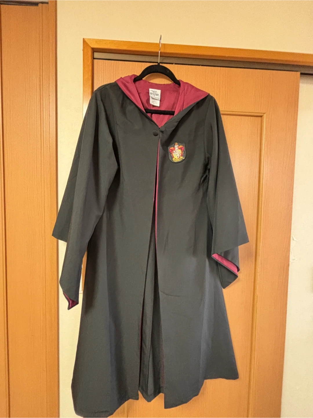 ハリーポッターのグリフィンドール制服セットです。 ・ローブは一回袖を通しました。 ヘッドバンドハーマイオニー仕様で1回使用しまさはた。 杖は新品です。 ・ローブにグリフィンドールの紋章付き 160センチの私が着てもゆとりあり、膝下までながさがあります。 ぜひ、スタジオツアーやユニバに持って行って着てください。