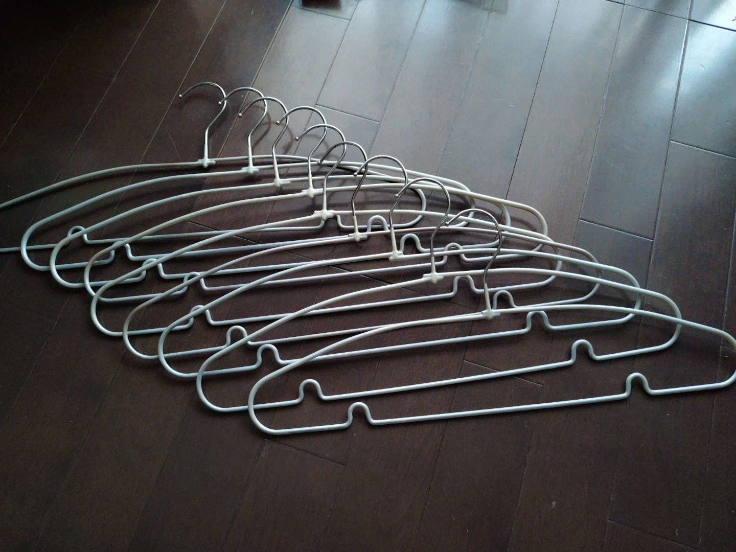 ハンガーのまとめ売りです。 全部で9本です。 幅が45cmと広めのハンガーになっているので 首元が開けたお洋服もかけやすい仕様です。 また、洋服をかける部分はラバー素材でコーティングされている為、 洋服がずり落ちるのを防ぎます。 中古品であることをご了承ください。