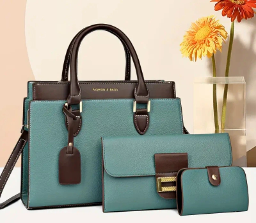 あたたかさハンドバッグの3点セットです。 ・色:水色、茶色 ・デザイン:シンプルなデザイン ・状態:未使用に近い ご不明点があればお気軽にご連絡ください。