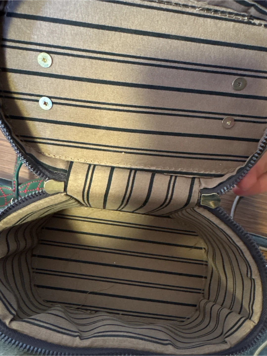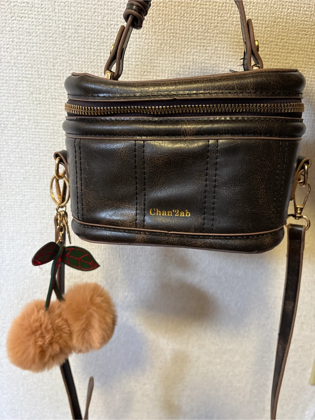 ご覧いただきありがとうございます。 キーホルダー付きハンドバッグです。 1度だけ使用しました。 ・ブランド:チャンチャブ ・色:ダークブラウン ・内側にストライプの生地 ・付属品:チャーム、ショルダーストラップ ・使用感少なめ 中古品であることをご了承ください。