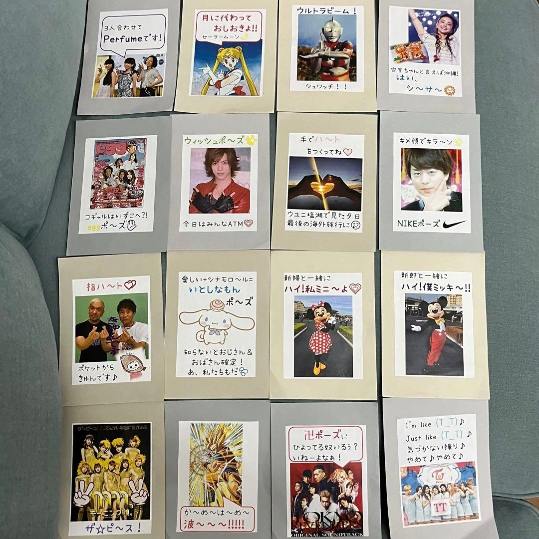 ハンドメイドのポーズカード16枚セットです。 ちょっと世代が分かってしまうものもありますが(笑) 不要なものは捨てるなり、上書きするなりしていただいて大丈夫です! もしくはこのカードだけ欲しいなどもありましたら、コメントにてよろしくお願いします(^人^) ちなみにウィッシュポーズのATMとは「ありがとうございます」の意味です! #結婚式 #食事会 #パーティー #二次会 #ホームパーティー #おもてなし #DIY #ラッピング #お礼 #御礼 #ウェディング #ウェディンググッズ #パーティー #パーティーグッズ #お祝い #結婚披露宴 #ポーズカード #写真カード #ピクチャー #写真タイム #写真 #カメラマン #ポーズ #写真ポーズ #結婚式プログラム #結婚式DIY #ハンドメイド #手作り #手づくり ご希望の方はお気軽にご連絡ください。