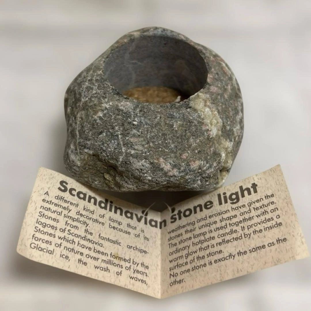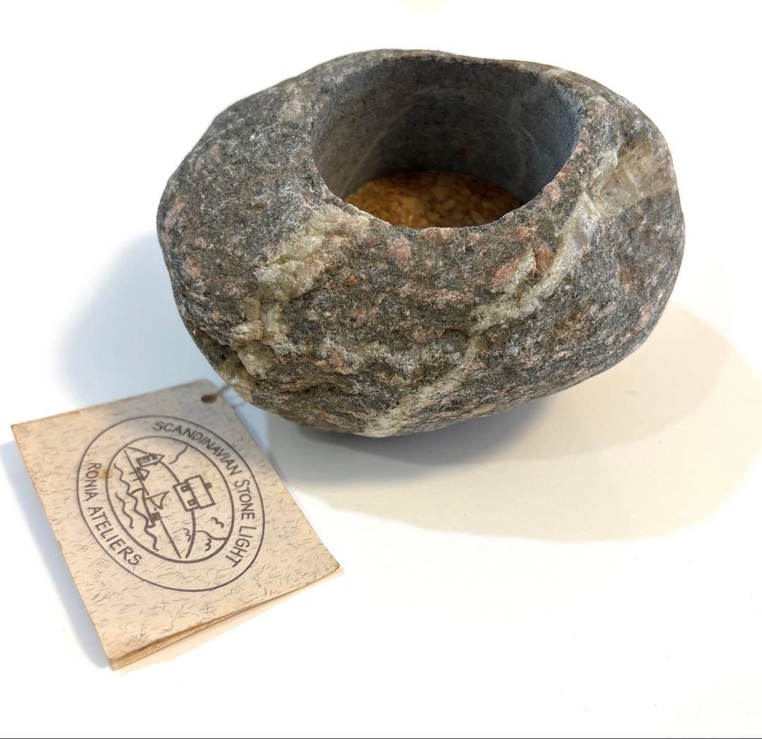 ご覧頂きましてありがとうございます! SCANDINAVIAN STONE LIGHT スカンジナビアン ストーンライト 天然石から手作業で製作されており、一つ一つ異なる形や模様が特徴です。キャンドルを灯すことで、自然な風合いの石を通して温かく柔らかな光を演出します。 ティーライトキャンドルホルダーとして使用することを想定されていますが、ミニ植木鉢としてや小物入れなど多目的に使用できるデザインです。 ✴︎ブランド/工房名:RONIA ATELIERS ✴︎素材:自然石 ✴︎サイズ:約9㎝×10.5㎝×6㎝ 約453g 家族がかなり前に海外で購入し、未使用のまま自宅保管しておりました。 詳細のタグには若干の汚れが見られます。 現在日本では希少な品だと思います。 キャンセル、返品、商品お受け取り後のクレームなどは不可でご了承頂けるようお願い致します。 ご希望の方はお気軽にご連絡ください。