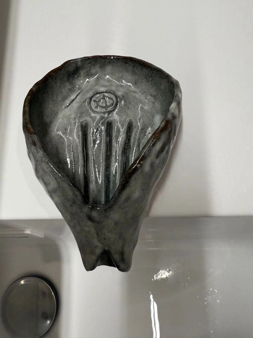 石鹸を置いても容器にくっつかないようギザギザがついています。水がたまらないように水の道があります。スポンジ置きにも使えます。 水が切れるようにナナメになっているので使い勝手の良い便利なアイテムです♬ 裏には滑り止めをつけてお届けします。(フィルムを外して乾いた状態の洗面所につけてお使いください。) カラー: ホワイト 白 素材 : 陶器 サイズ : 全長15cm×幅最大10cm×高さ5cm 素人計測のため誤差はお許しください。