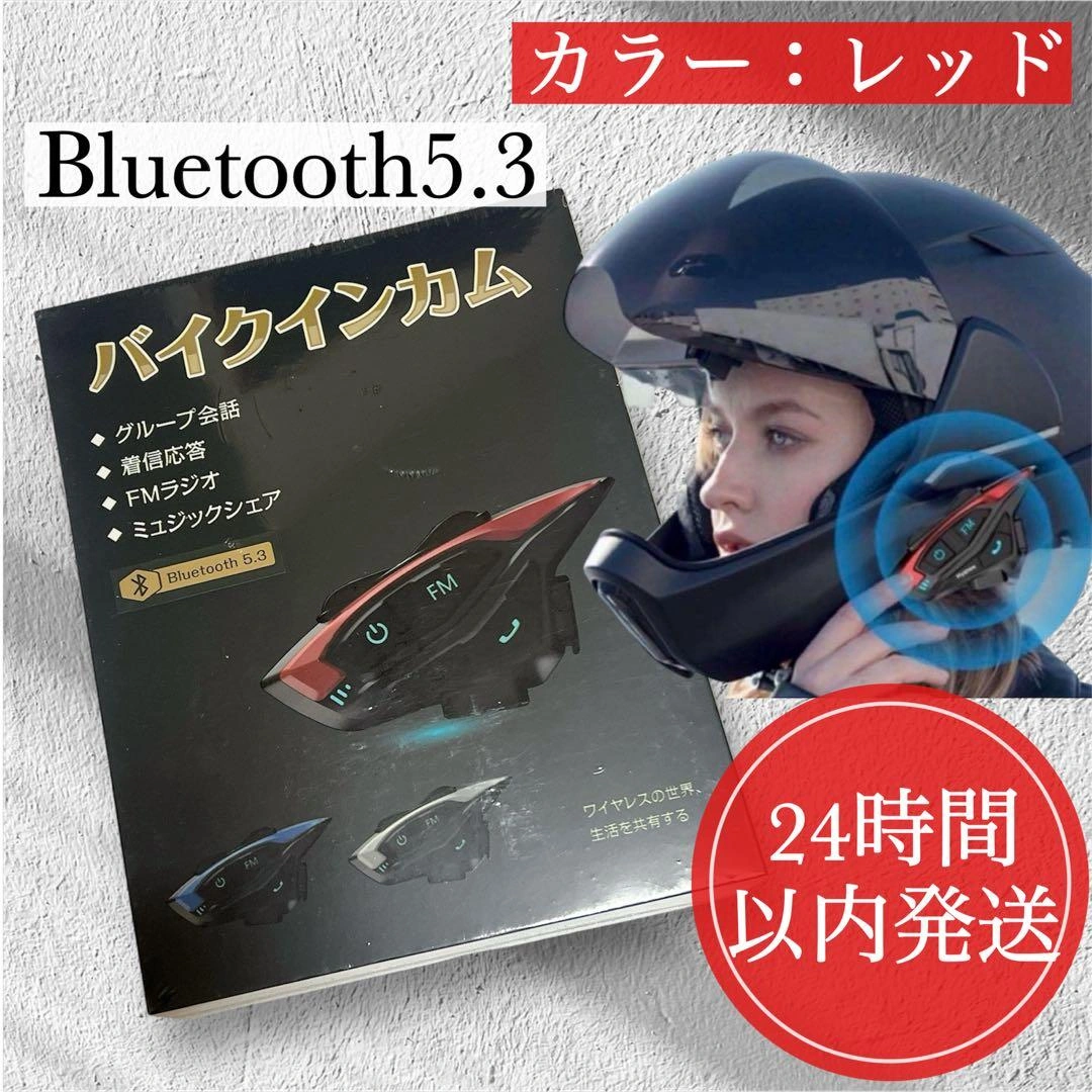 バイク インカム 2000m 長距離通話 2人同時 フルデュプレックス通話 赤