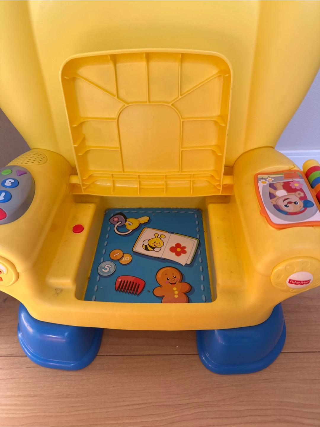 ブランド:fisher-price(フィッシャープライス) 商品特徴:遊びながら日本語・英語、数字や数え方を学び、立ったり座ったりすることで、大切な 運動能力や足腰の発達も促します。 サイズ:40.0×41.0×43.0cm(幅×奥行×高さ)     床から15.3cmの高さに座面     背もたれの長さは27.7cm カテゴリ:ベビーキッズ知育おもちゃ カラー:イエロー 使用回数:2022年購入、1人使用しました 状態:動作確認済み 子供が使用したものですので完璧なものではないことご了承ください。    ※何か気になることがあれば商品画像も 追加できますのでお気軽にお問い合わせください。