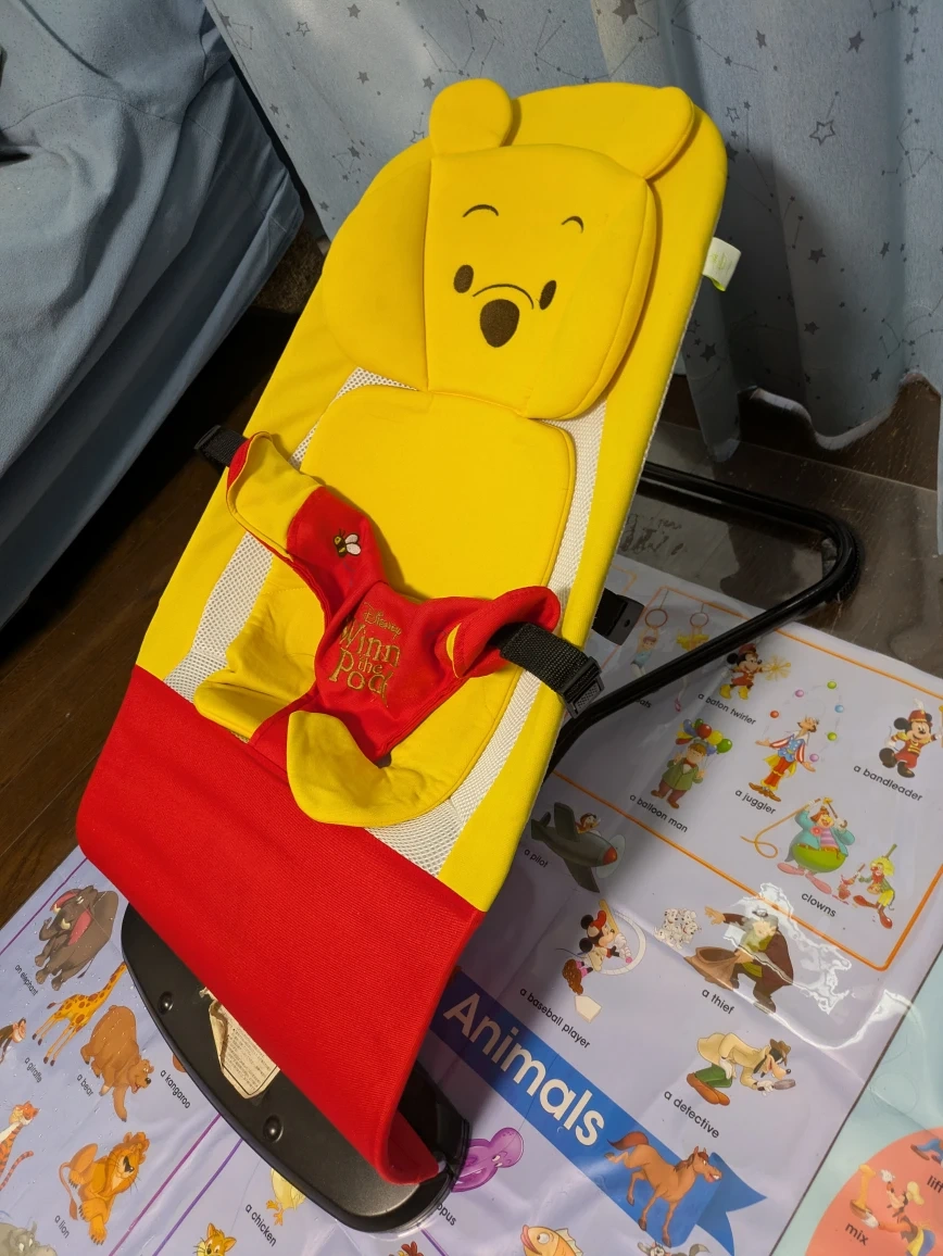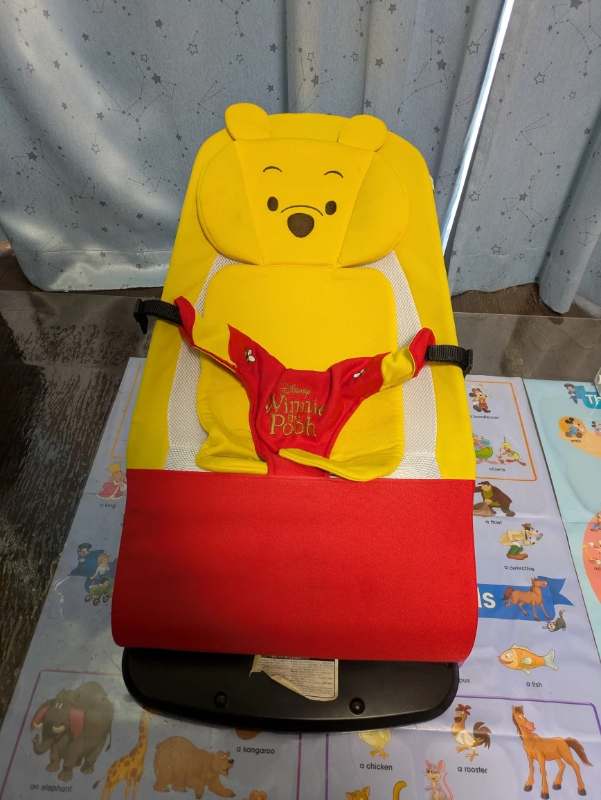 ディズニー プーさんのベビーバウンサーです。 本体に目立つキズや汚れは見当たりませんが、注意事項のラベルが剥がれかけています。 プーさん型のマットは取外し可能。洗濯できます。 中古品であることをご了承ください。 #バウンサー #ベビー用品