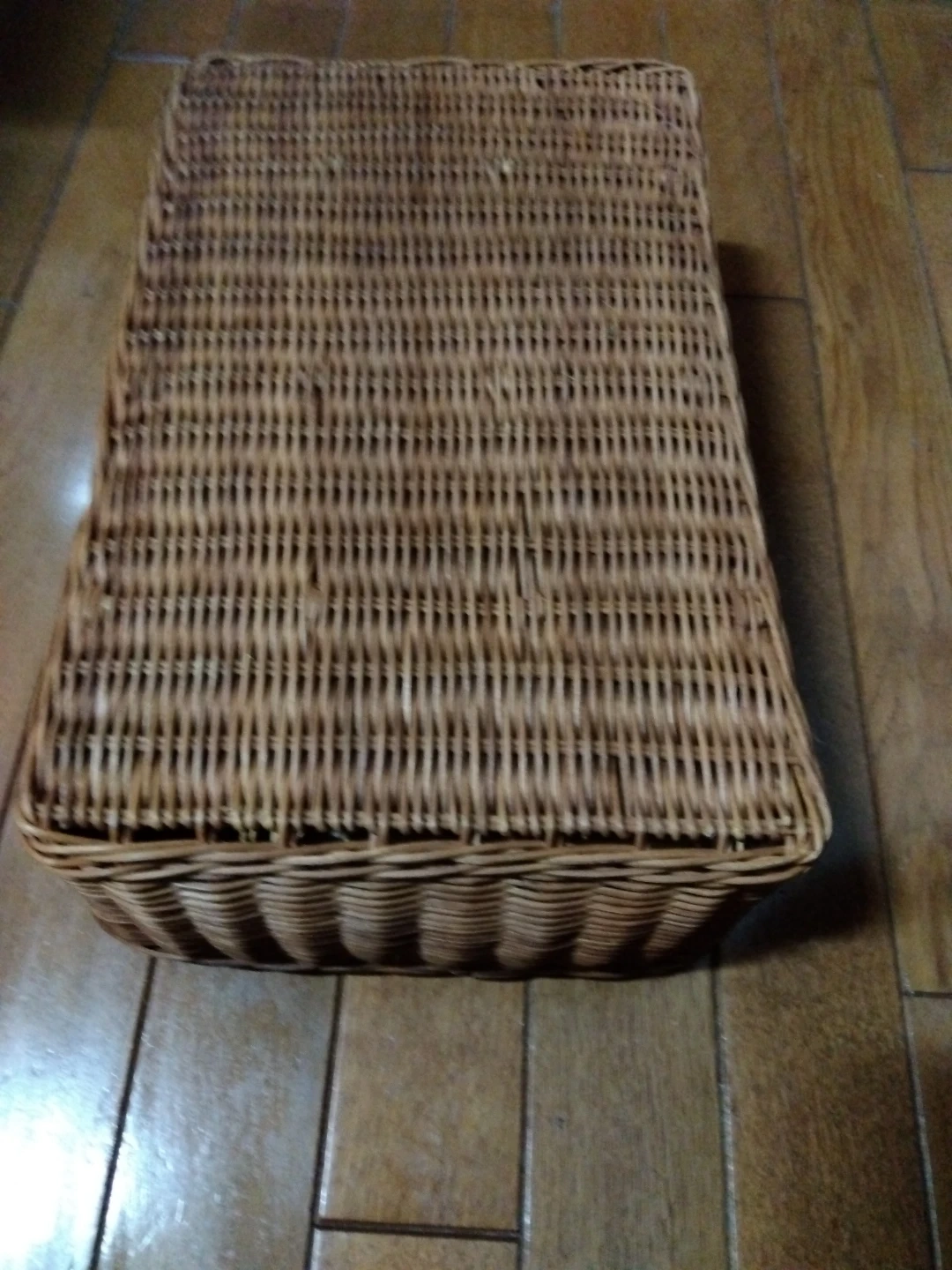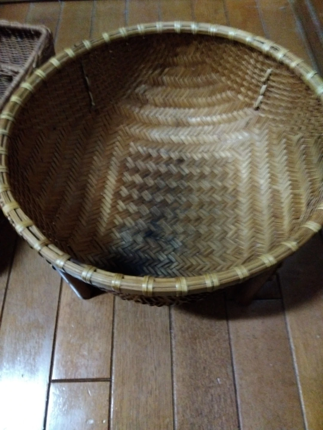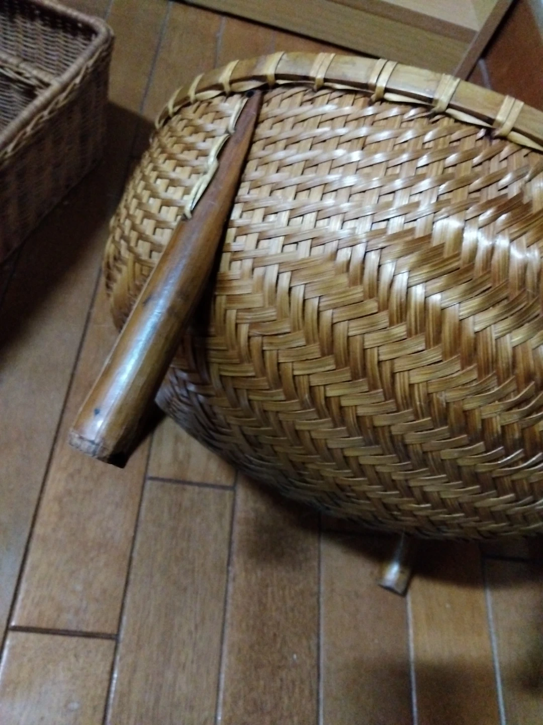 超希少60年前の天然竹製手編み収納ボックス 約54cm x 39cm国産