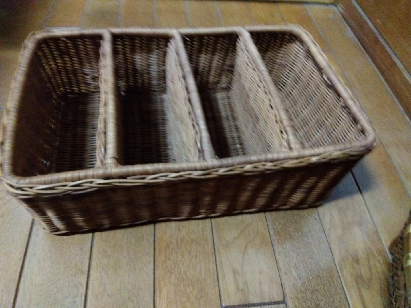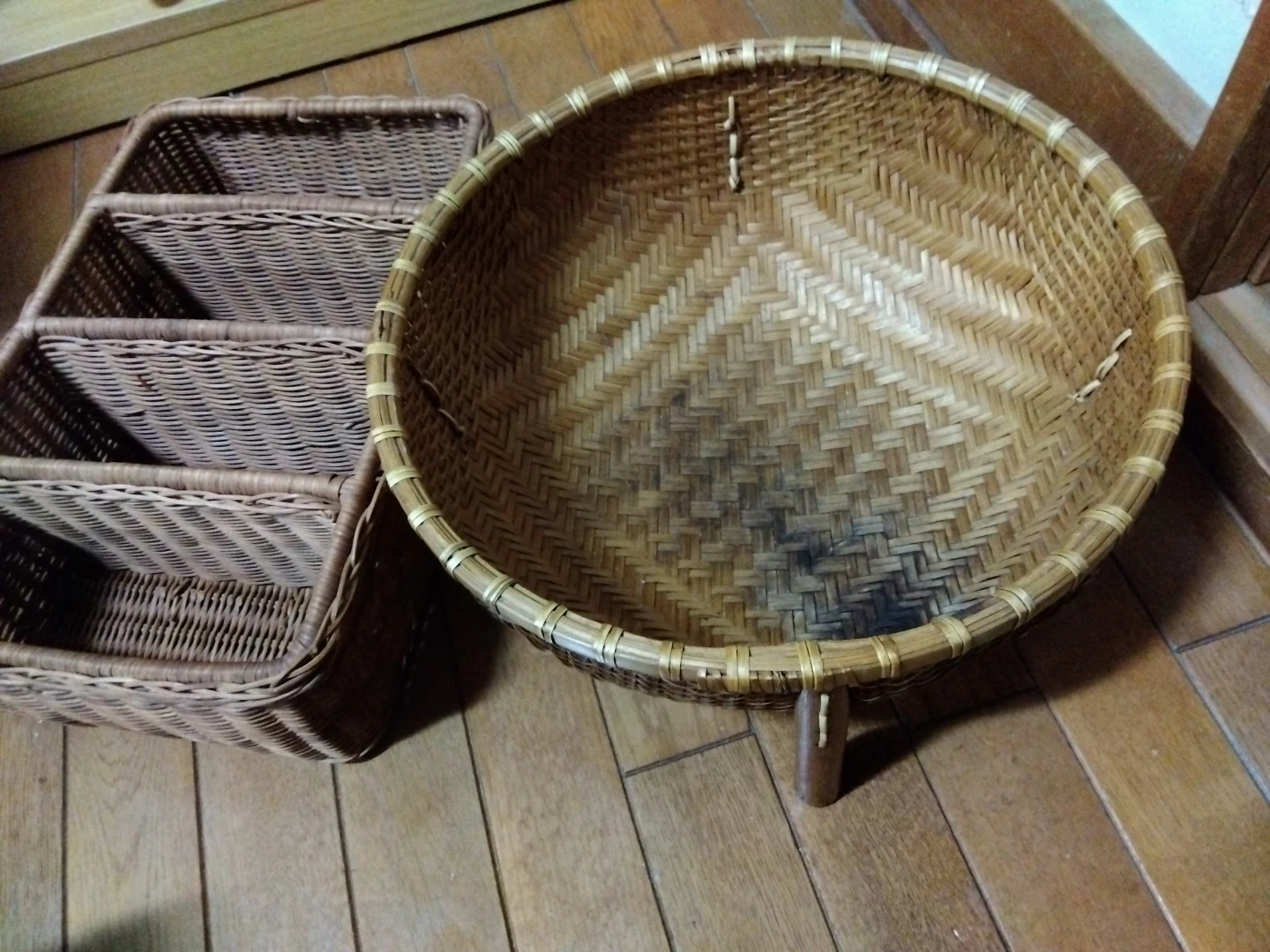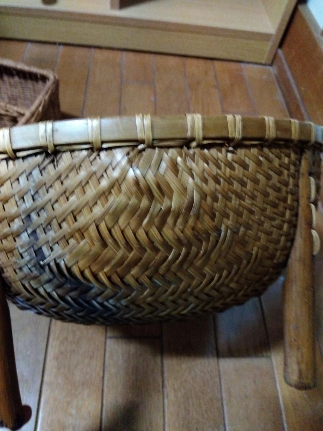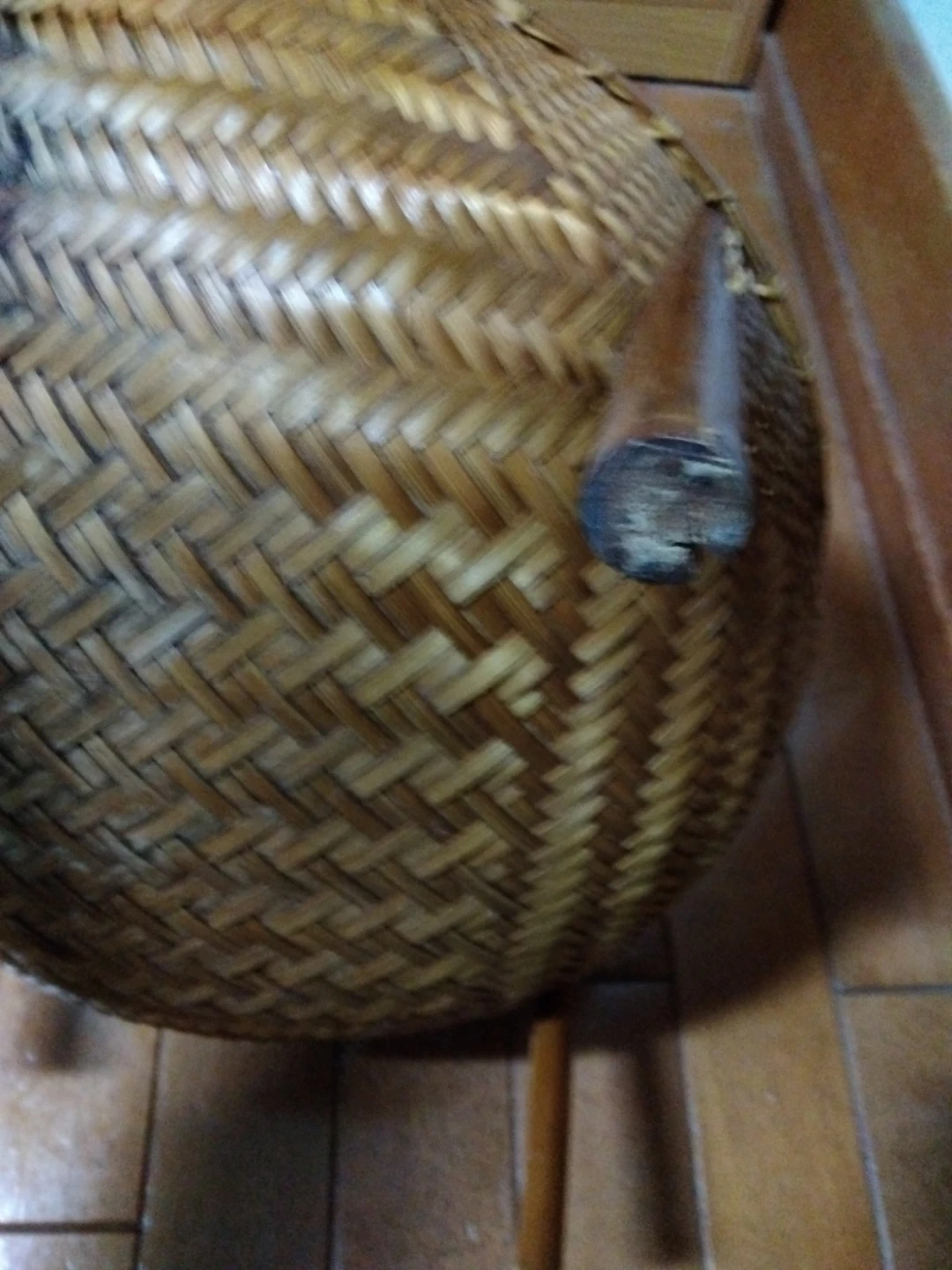超希少60年前の天然竹製手編み収納ボックス 約54cm x 39cm国産
