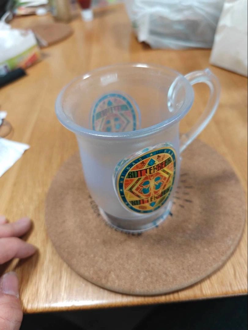 バタービールのロゴが施されたプラスチック製のマグカップです。 - デザイン: バタービールのロゴが施された透明なマグ - 素材: プラスチック製 - 特徴: オリジナルレシピに基づくデザイン ご覧いただきありがとうございます。 ご希望の方はお気軽にご連絡ください。