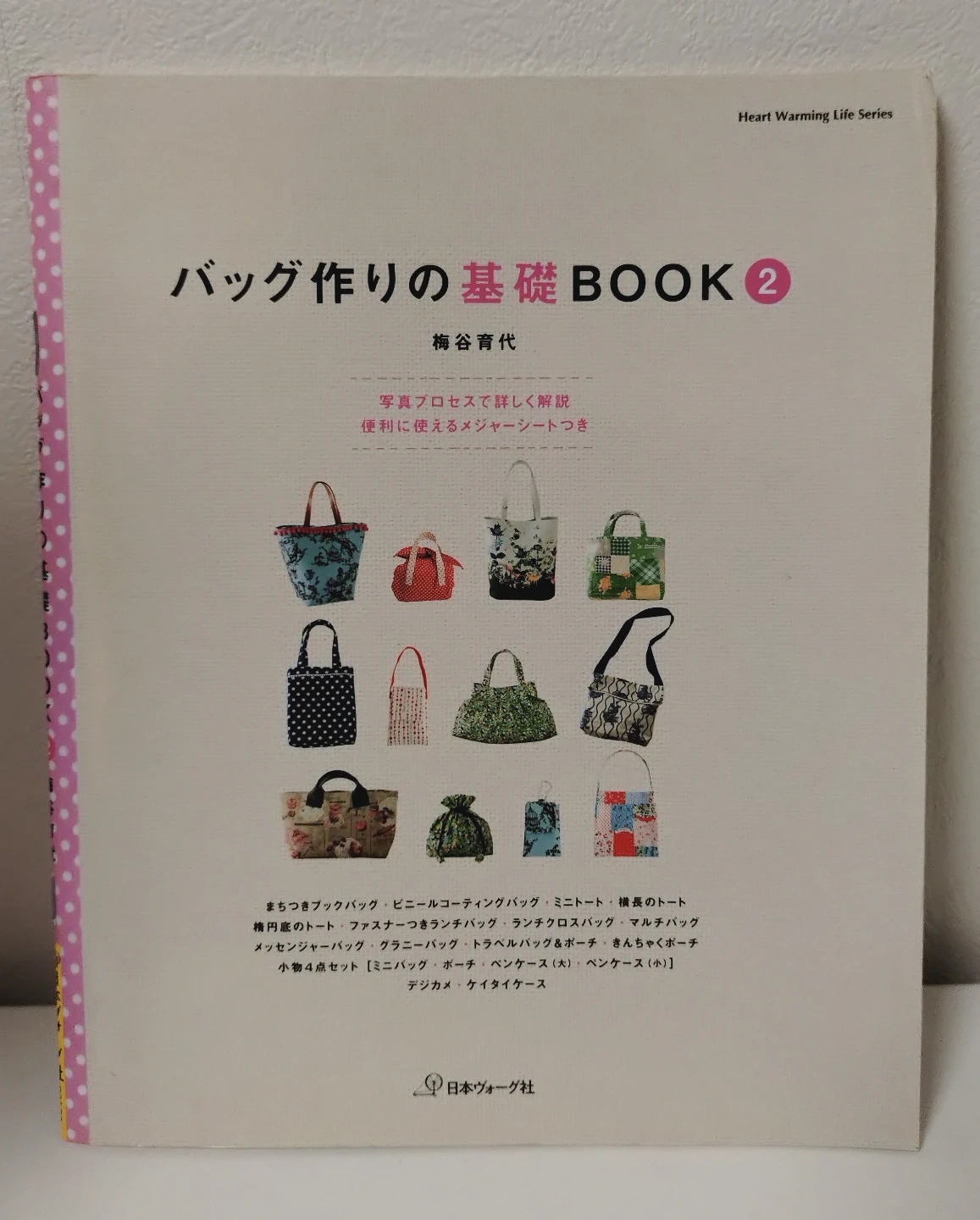 バッグ作りの基礎BOOK 2です。 ・手作りバッグの作り方を紹介する本 ・写真プロセスで詳しく解説 ・便利なメジャーシート付き 中古品であることをご了承ください。