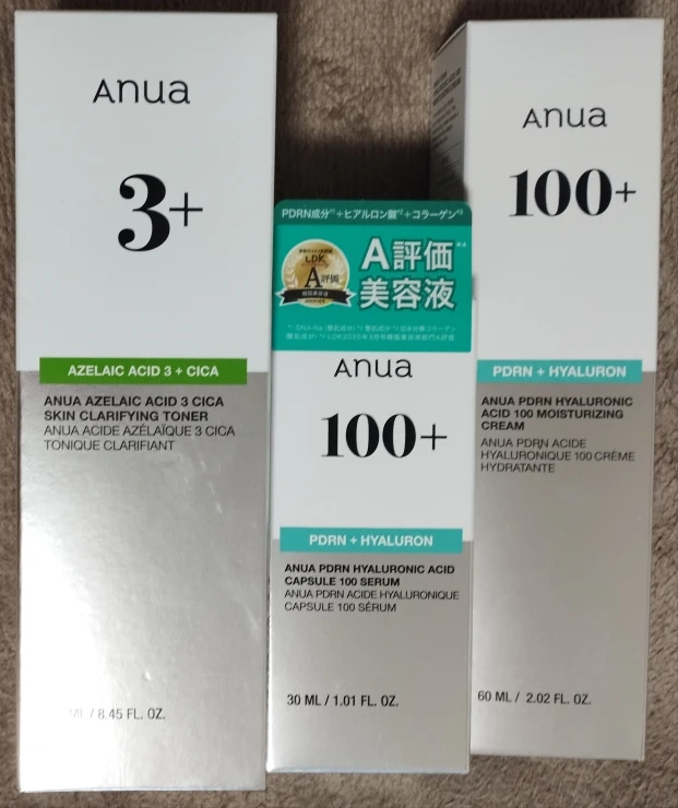 バラ売りご希望の場合は画像の定価の半額となります(10円単位切捨て)。 アヌア (Anua) 1、化粧水 2、美容液 3、クリーム 【内容】 ・アゼライン酸3 シカ スキン クラリファイング トナー ・PDRN ヒアルロン酸カプセル100セラム ・PDRN ヒアルロン酸100 モイスチャライジングクリーム 同時出品物との同時購入歓迎です! (切手、雑貨、衣類など) 受け渡しは溝の口駅、高津駅、津田山駅周辺にて。 自宅近くのコンビニまで来ていただける場合は夜間の受け渡しも可能です。