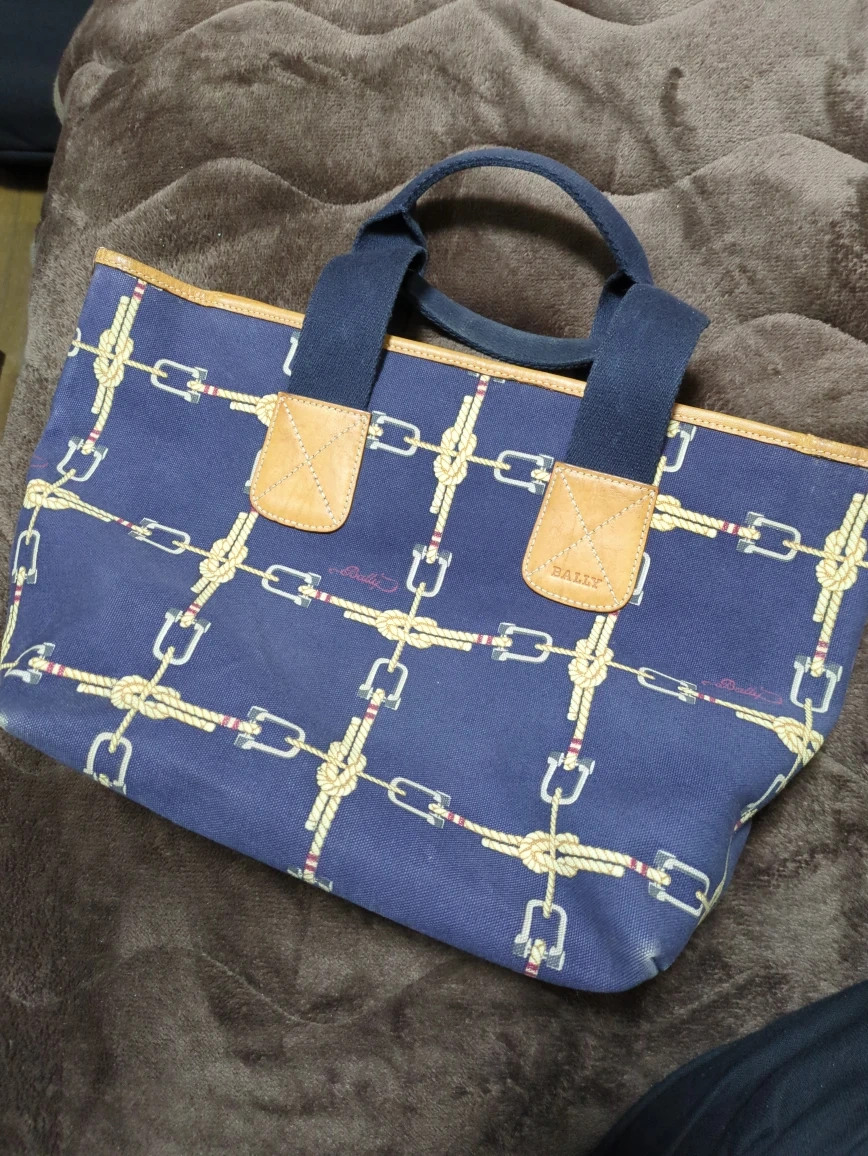 あたたかさバリーのトートバッグです。 ・ブランド:バリー ・色:ネイビー ・デザイン:ロープとチェーン柄 ・素材:キャンバス地 ・状態:使用感あり、内側に汚れあり 中古品であることをご了承ください。