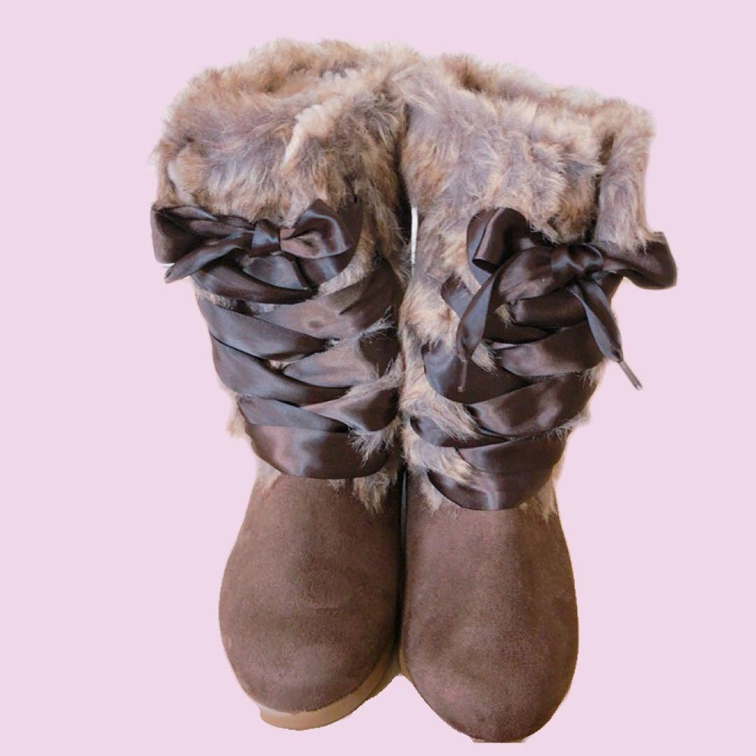 バンズリボンブーツです。色合いが可愛いく、中のボアも暖かいと思います。 未使用ですが、下駄箱保管の為、ご理解頂ける方にお願いします。目立った汚れ等はありませんが、細かいところが気になる方はご購入をお控えください。サイズがよくわからないので、画像を参考にしてください。 確認は致しますが、素人による検品の為見落とし等あるかもしれません。気になる事は納得いくまでコメントくだされば対応させて頂きます。 気にされる方や、ジャッジの厳しい方はご購入をお控えください! ご希望の方はお気軽にご連絡ください。