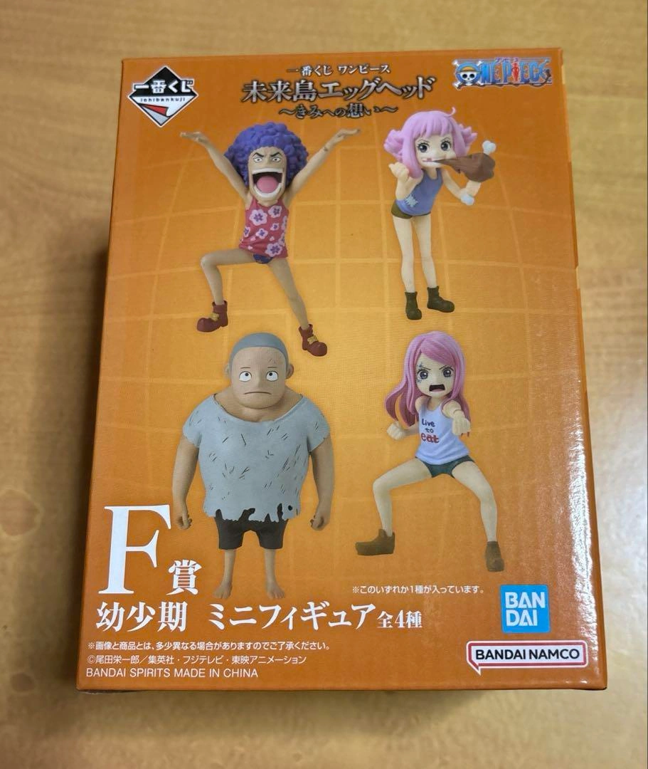 バンダイの一番くじワンピース、ミニフィギュアです。 【情報】 ブランド:バンダイ 商品:一番くじ ワンピース 未来島エッグヘッド F賞 幼少期 ミニフィギュア 全4種 中古品であることご了承ください