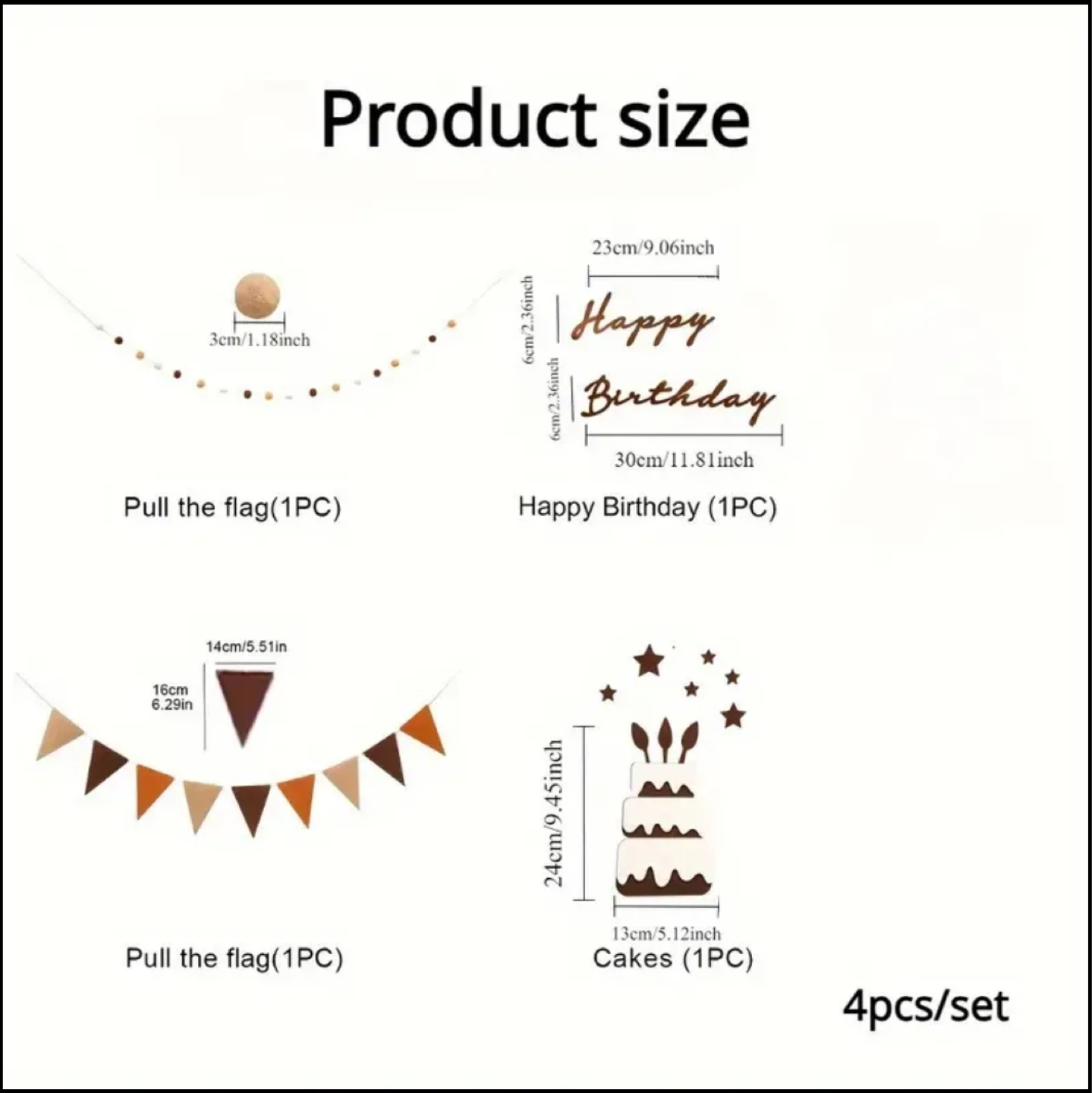 バースデーデコレーション壁飾りセット ・4点セット ・サイズは画像参照してください 材質:フェルト 3枚目は実際に使用した画像になります。 1度短時間使用しました。 両面テープやセロテープで貼ります。 イメージご参考までに。 フリマで新品を1000円ほどで購入したものです。 ◾️受け渡し希望場所◾️ 生麦駅改札   or セブンイレブン生麦4丁目店(駐車場有) ご検討よろしくお願いいたします。 . .