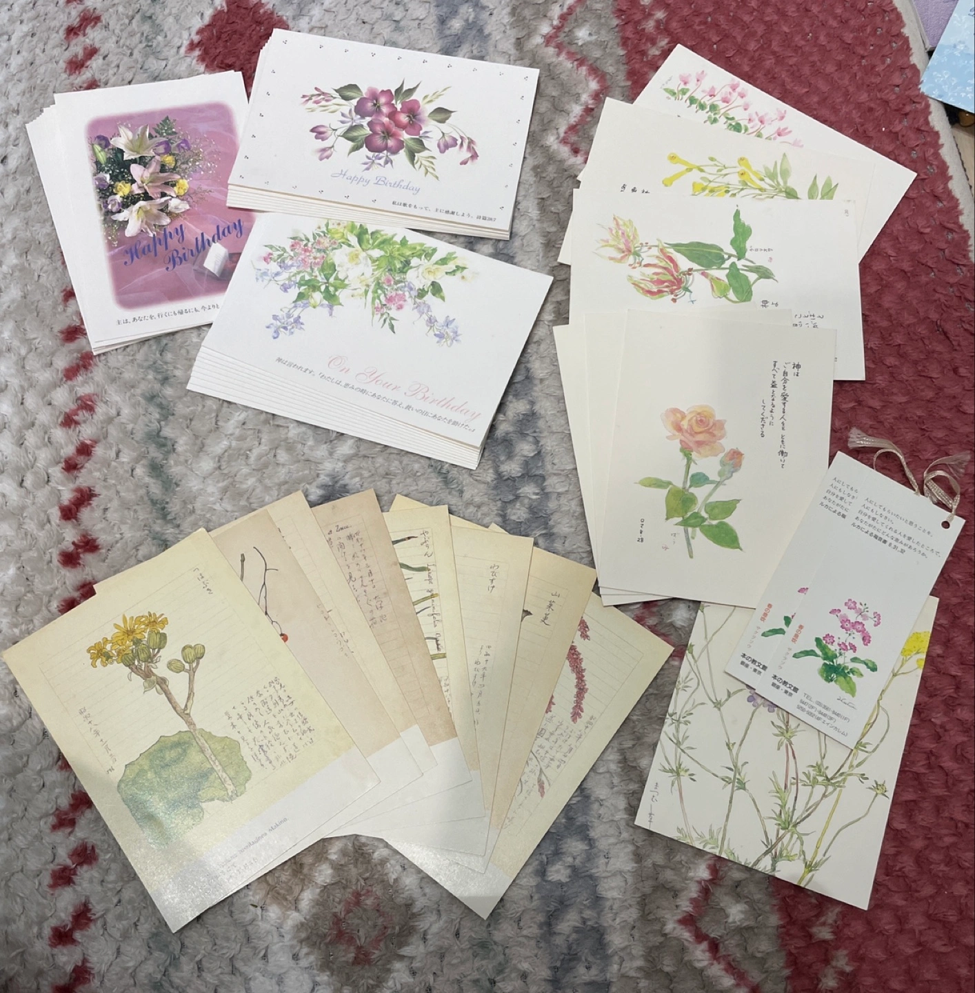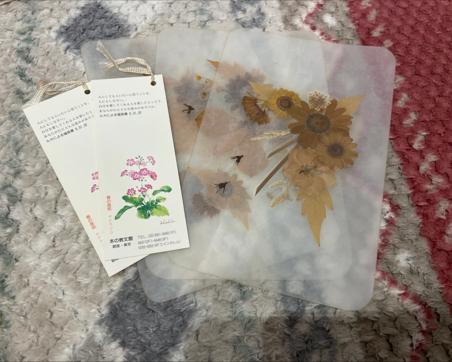 ・バースデーカード、グリーティングカード ・花柄デザイン ・未使用 写真3枚目、おまけの押花のカードとしおりです。