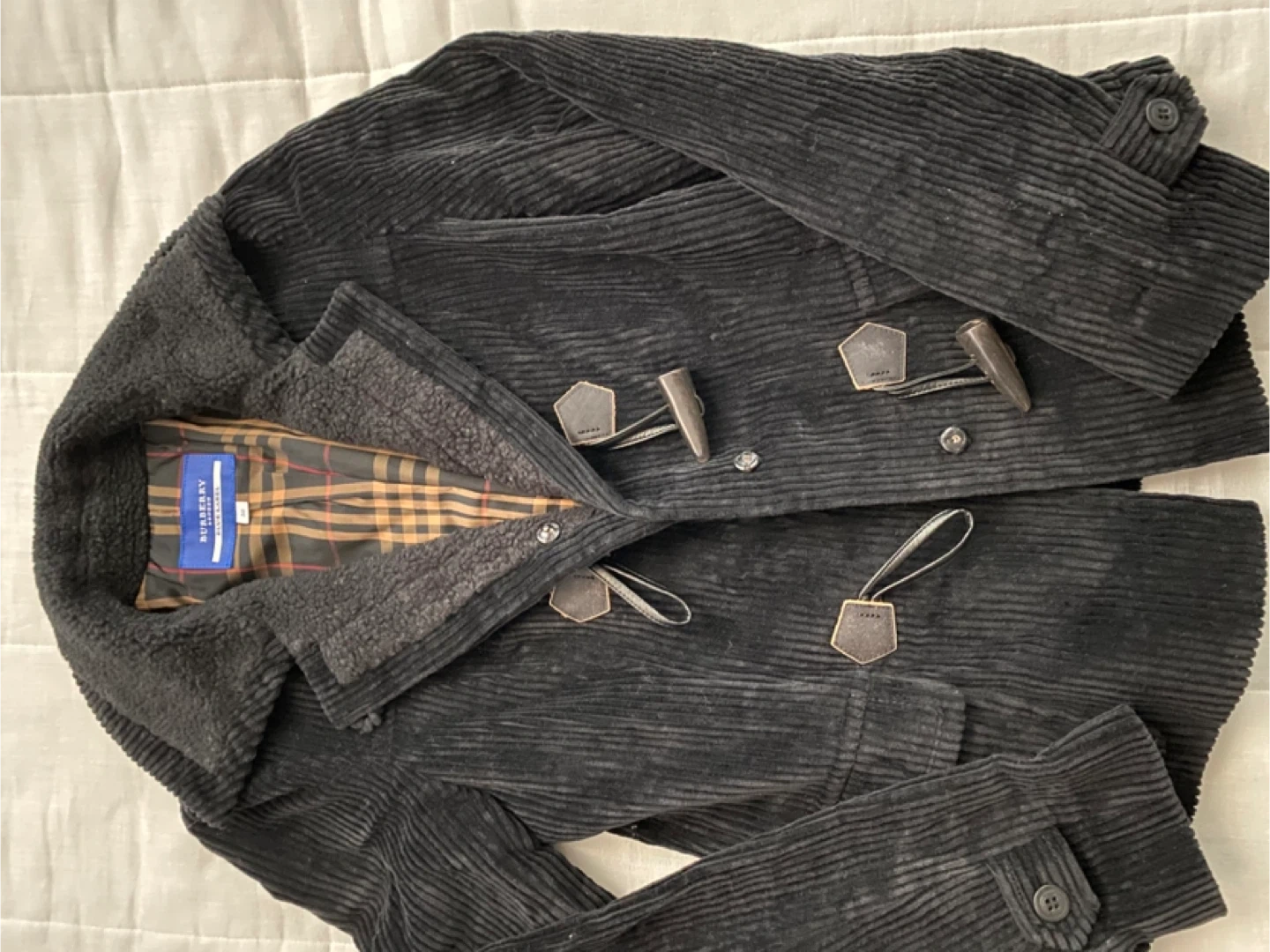 バーバリーブルーレーベルのコーデュロイジャケットです。 【情報】 ブランド:バーバリーブルーレーベル サイズ:38 素材: 表地:綿100% 裏地:キュプラ、ポリエステル 【状態】 使用感はありますが、目立つ傷や汚れはありません。黒のコーデュロイなので、画像では白っぽく見えてますが、汚れなどはありません。 襟元もモコモコしていて暖かいです。 中古品であることをご了承ください。 受渡しは三軒茶屋近辺から桜新町辺り迄可能です。