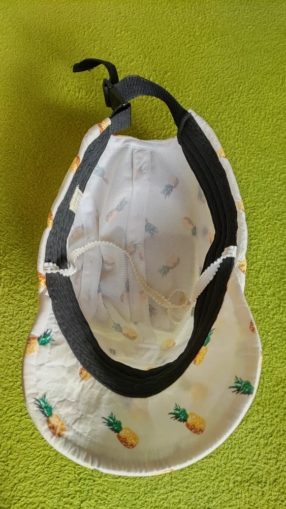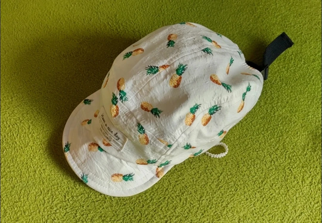パイナップル柄のキッズキャップです。 めちゃくちゃ可愛いです😊 男の子でも女の子でも似合います。 ・柄:パイナップル柄 ・サイズ:48〜50cm 記名跡あり、洗濯可能なシール貼ってます。 中古品であることをご了承ください。