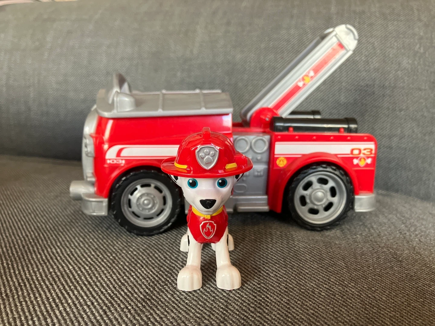 パウ・パトロールのマーシャル ファイヤートラックです。 ・おもちゃ ・消防車 ・マーシャルの人形付き ・全体的にきれい 中古品であることをご了承ください。