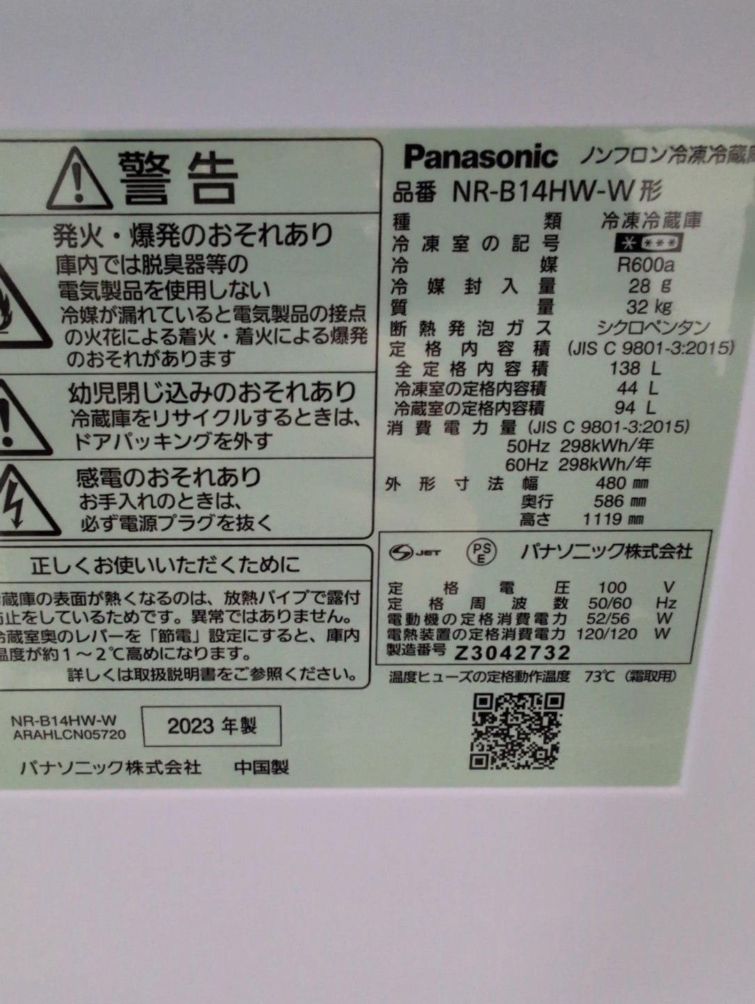 あたたかさ【情報】 ブランド:パナソニック 冷蔵庫 nr-b14hw-w 138L 2023年製 カラー:白 【状態】 中古品にしては全体的にキレイです。 洗浄済みになります。