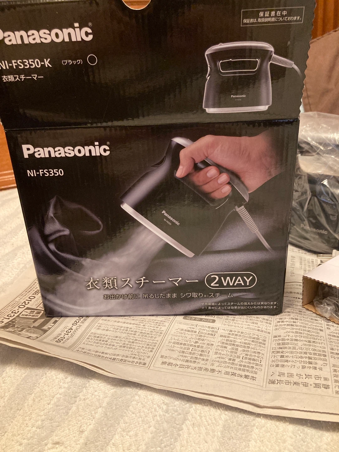 パナソニックの衣類スチーマーです。 【情報】 ブランド:パナソニック 型番:NI-FS350-K 色:(ブラック) 【特徴】 ・衣類スチーマー ・2WAY ・お出かけ前に吊るしたままシワ取り 中古品であることご了承ください。