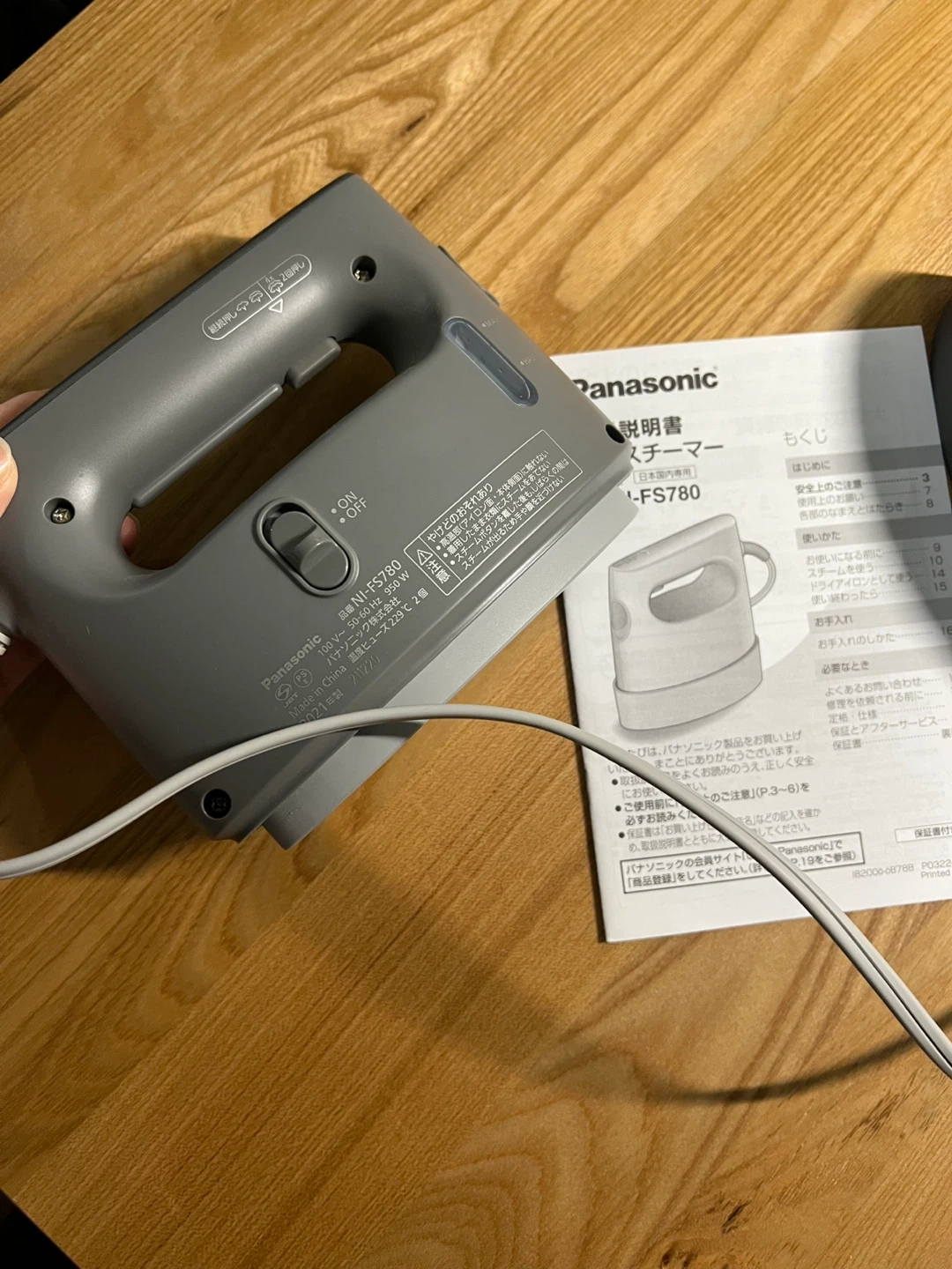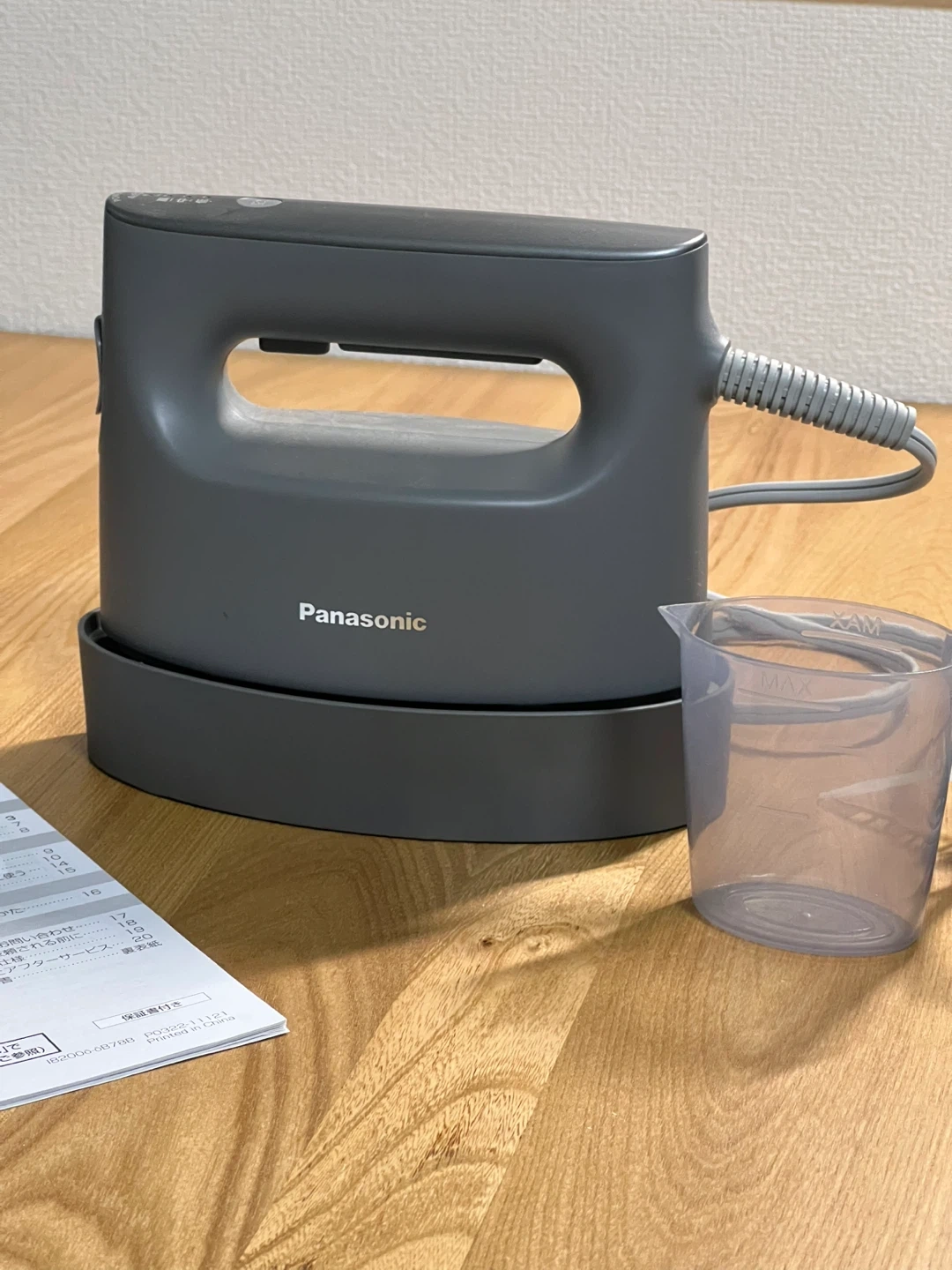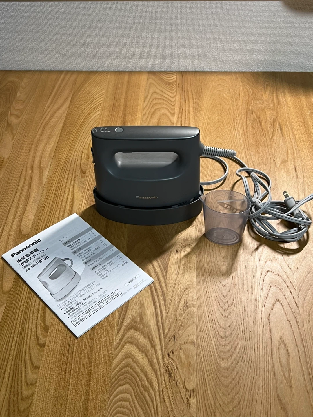 パナソニックの衣類スチーマーです 【情報】 ブランド:パナソニック 型番:NI-FS780 カラー:グレー 【状態】 使用感少なめ、目立つキズなし 【付属品】 説明書、給水カップ + アイロンミトン(uchi more LAUNDRY) 中古品であることご了承ください