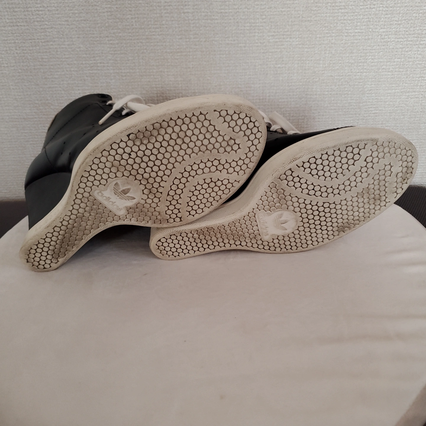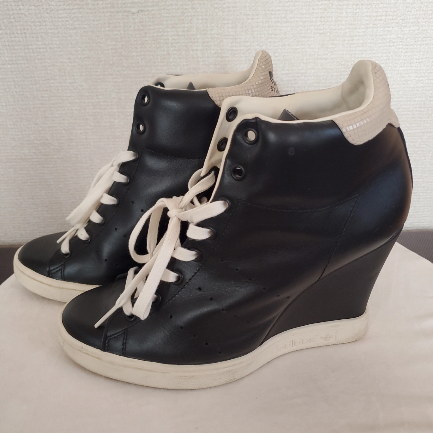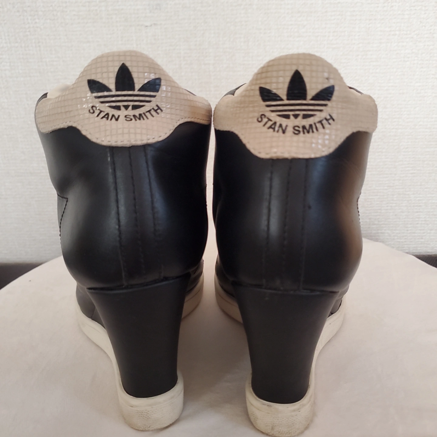 アディダス オリジナルス スタンスミス アップ ヒール ブラック 25cm ヒール付きなので、履 くと脚長効果があります。 カッコイイデザインですが、キレイ目にも合わせやすい配色です。オシャレさんにおすすめദി ᷇ᵕ ᷆ )♡ ※あくまでもUSEDですから、神経質な方はご遠慮下さい ※ノークレーム、ノーリターンでお願いします ※購入時の箱はありません ■サイズ:25cm ■ヒール高さ:約8-9cm ■色:ブラック ■定価:22,000円 ■ホームベージ引用文: “スタンスミス”が生んだガーリーなウェッジヒールデザインの「スタンスミスUP」 滑らかなレザーアッパーを使用しヒールにはつやのある格子柄のレザーパッチをあしらい、パンチング加工のスリーストライプス、ラバーカップソールを備えた一足です。