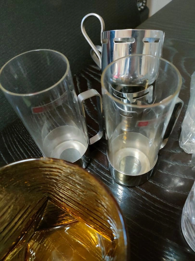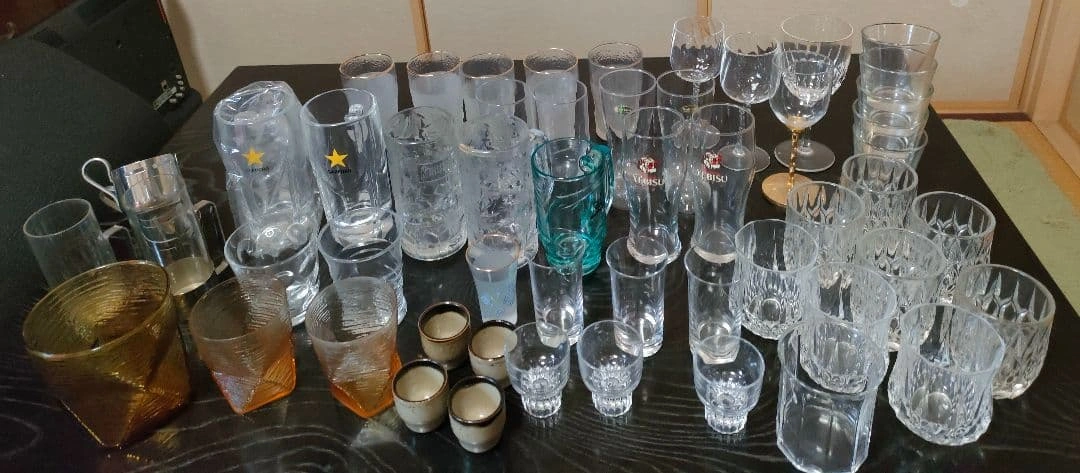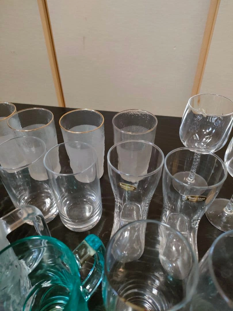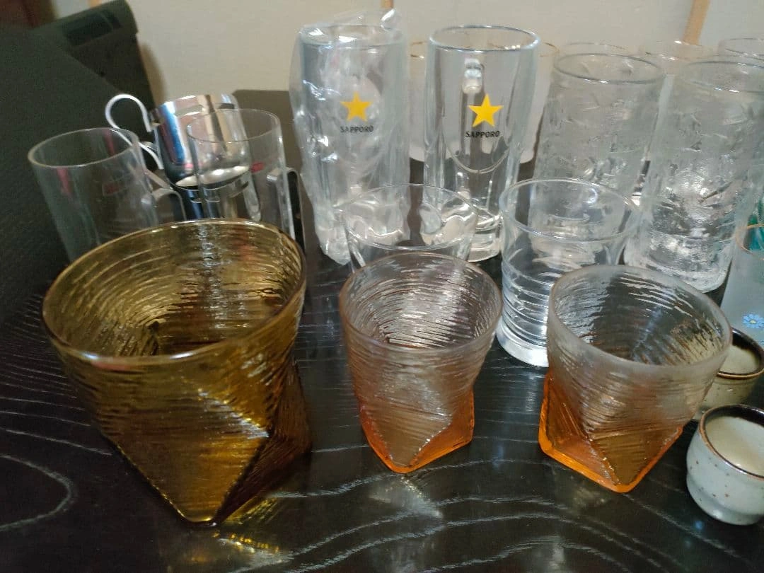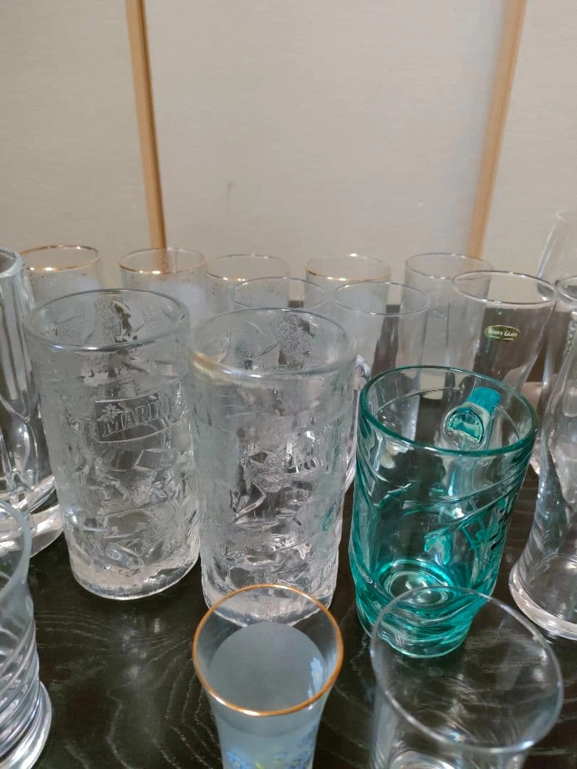 ビールジョッキ、ワイングラス、ウイスキーグラス、ぐい呑み等、大量の晩酌セットをまとめ売りします。 ビールジョッキ×5 ビールグラス×2 ワイングラス×4 ウイスキーグラス×9 耐熱グラス×2 ぐい呑み・お猪口×11 ヴィンテージグラス×3 等、50点以上あります。 状態は新品未開封〜使用感あるものまで様々です。 大量にあり、素人検品の自宅保管品のため、 多少の汚れ、小傷などの状態やわかりづらい程度の見落とし等はご理解いただける方のご購入をお願いいたします。 ご希望の方はお気軽にご連絡ください。