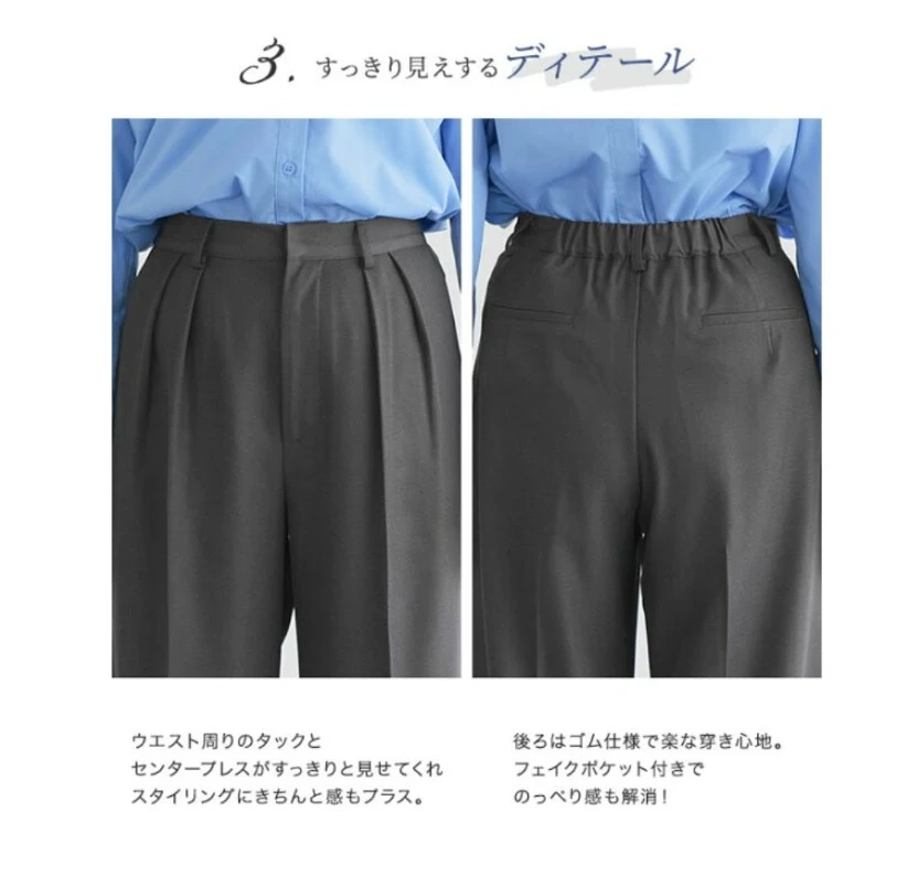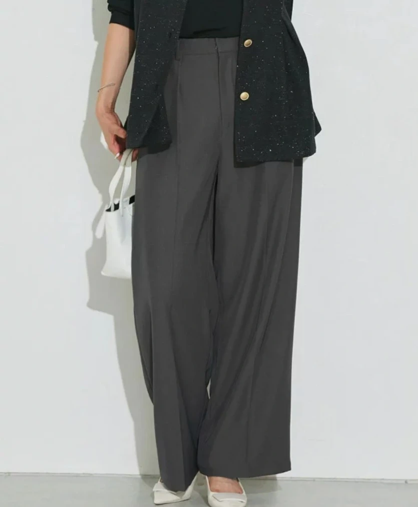 チャコール PSサイズ センタープレス タックワイドパンツ ☆ センタープレス タック パンツ ワイドパンツ 美脚 ボトム きちんと感 きれいめ ゆったり 楽ちん オフィス 通勤 レディース オフィスカジュアル ピエロ