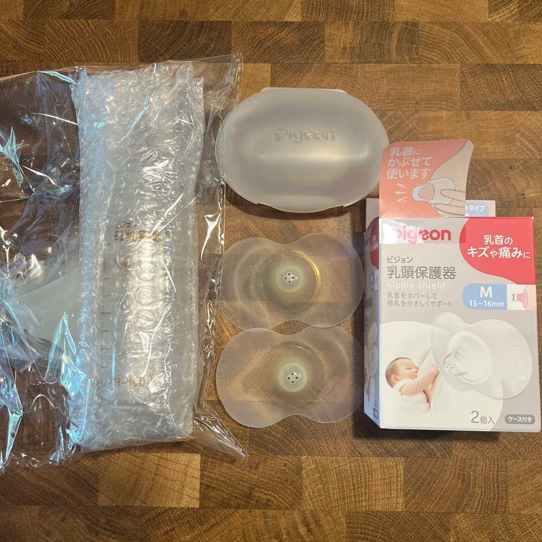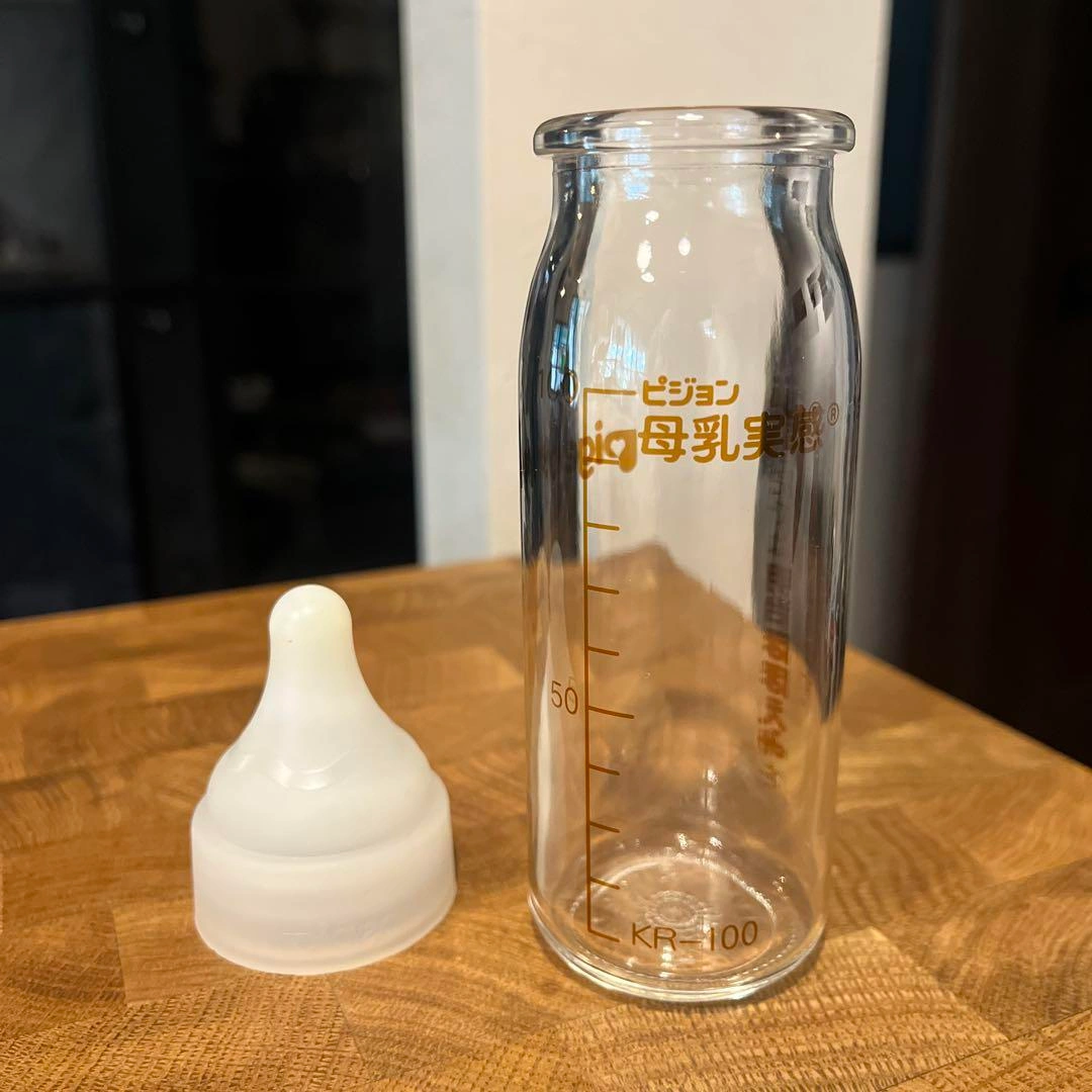 ピジョン Pigeon ・病産院用ガラス哺乳瓶 100ml ・母乳実感直付け乳首 SS(新生児用) ・乳頭保護器 M 2個入 ケース付き 産後約1ヶ月使用しました。 薬液消毒していた為、乳首と乳頭保護器どちらも白っぽく変色しています。(写真よりも濃色に見えます。) 使用には問題ありませんが、再度消毒してからご使用ください。 ※バラ売り不可※ ご希望の方はお気軽にご連絡ください。