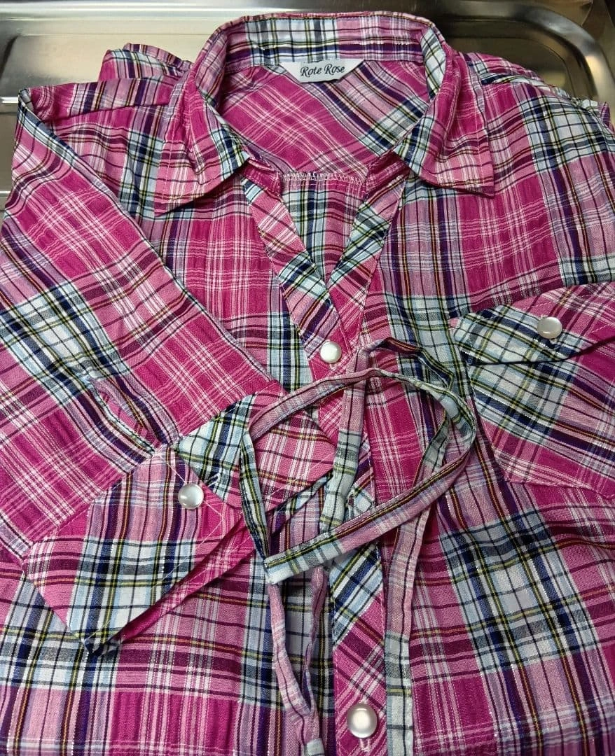 新品未使用品、タグはありません。 Rote Roseの商品です。 出品のため試着を1回、洗濯を1回しました。 洗濯したところ、洗濯表示タグがほつれて使用感が出てしまいましたので、お安くします。 袖口はロールアップできます。 腰ひもベルト付き、約80cm丈、Mサイズです。 出品のため試着しましたところ、やや細身仕様かなと感じます。お尻はすっぽり隠れます。 ボタンを全開してロングシャツ、ジャケットとして着るのも良いですね。 カラー...ピンク 柄...チェック 季節...春 夏 初秋 ご希望の方はお気軽にご連絡ください。