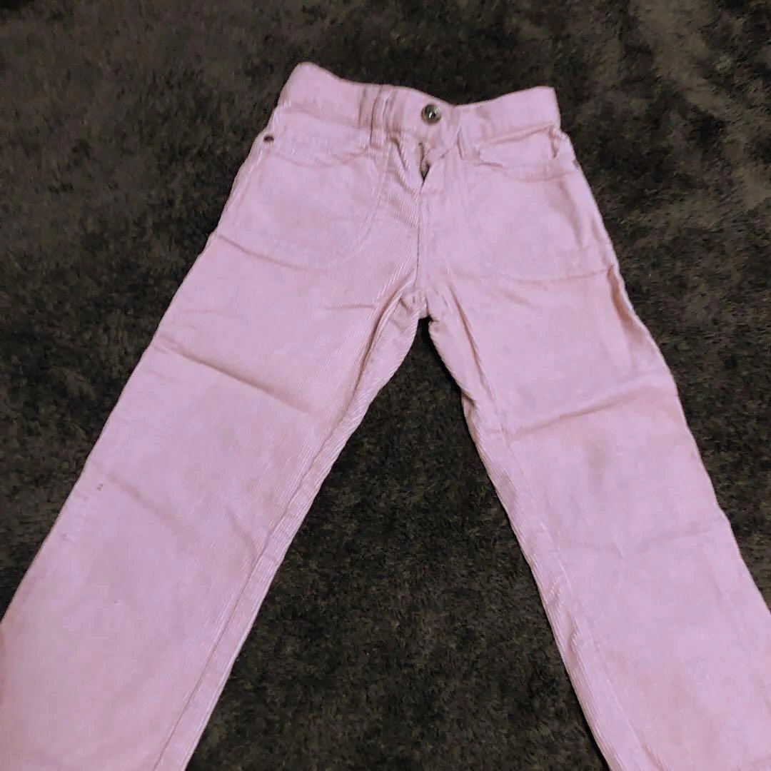 写真でうまく伝わりづらいですが、色はくすみピンクのような色味です。 落ち着いたピンク色のコーデュロイ素材で、柔らかい肌触りが特徴です。後ろポケットには蝶の刺繍があります。 ストレートレッグのスタイルで、普段使いに最適です。コーデュロイ素材は秋冬のコーディネートにぴったりです。 【サイズ】 92〜98cm 3〜4才目安 成長に合わせて長く着用できるデザインです。 - 色: ピンク - 素材: コーデュロイ 綿100% - デザイン: 蝶の刺繍 - スタイル: ストレートレッグ ご覧いただきありがとうございます。