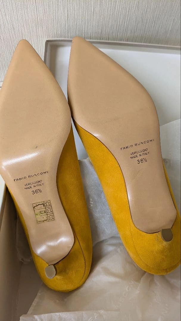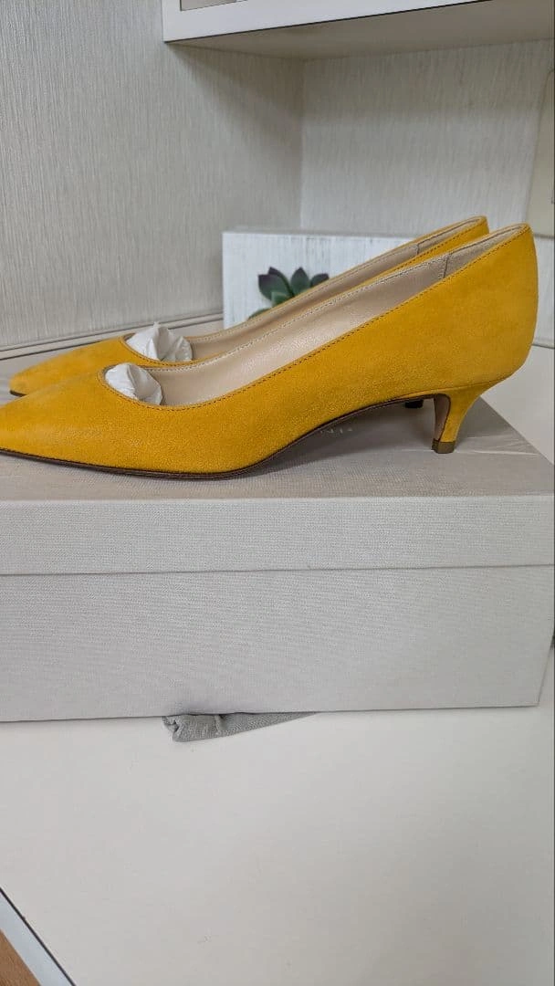 箱に傷みがあるため、お安くしています。 新品未使用です。 シンプルなシルエットのローヒールポインテッドトゥパンプスです。柔らかいスウェード素材が、落ち着きのある足元を演出します。 大人のカジュアルスタイル〜オケージョンシーンにも対応。 ローヒールでありながら、ポインテッドトゥが女性らしさを引き立たせるところがポイント。シャープなトゥとヒールのバランスの良さが、きちんとした印象を受けるフォルム。安定感のあるヒールバランスは、ヒールが苦手な方でも安心してお履き頂けます。 つま先...ポインテッドトゥ ご希望の方はお気軽にご連絡ください。