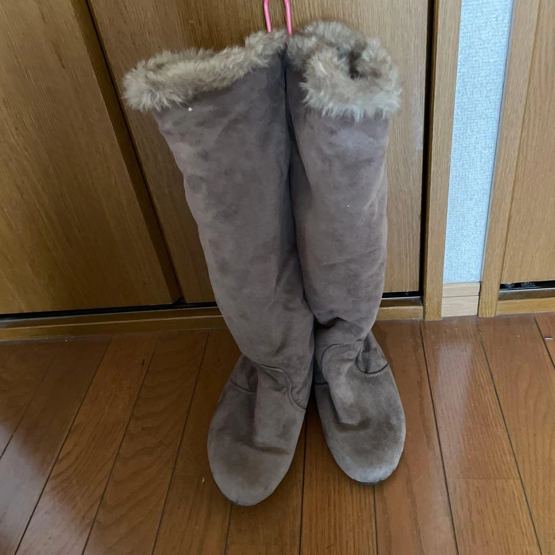 ファー付きのベージュスエードロングブーツです。 - 色: ベージュ - 素材: スエード - デザイン: ファー付きロングブーツ - スタイル: ムートンブーツ - 高さ: ロング ご希望の方はお気軽にご連絡ください。