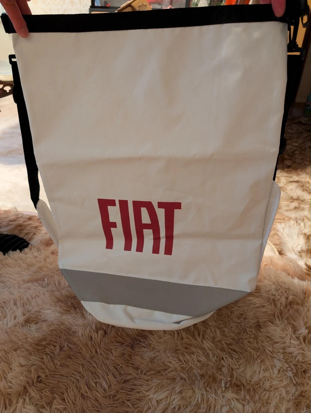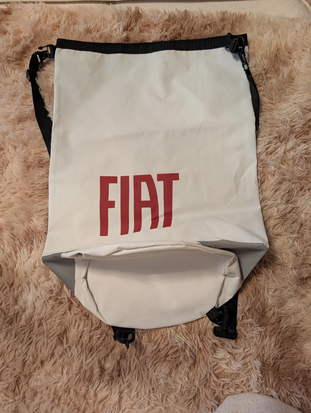 フィアットのリュックトートバッグです。 ・カラー:ホワイト、グレー、レッド ・ロゴ:FIAT ・状態:使用感かなり少なめ サイズ 縦  約64センチ 横 約44センチ 幅 マチ部分 約28センチ お気軽にご連絡ください!