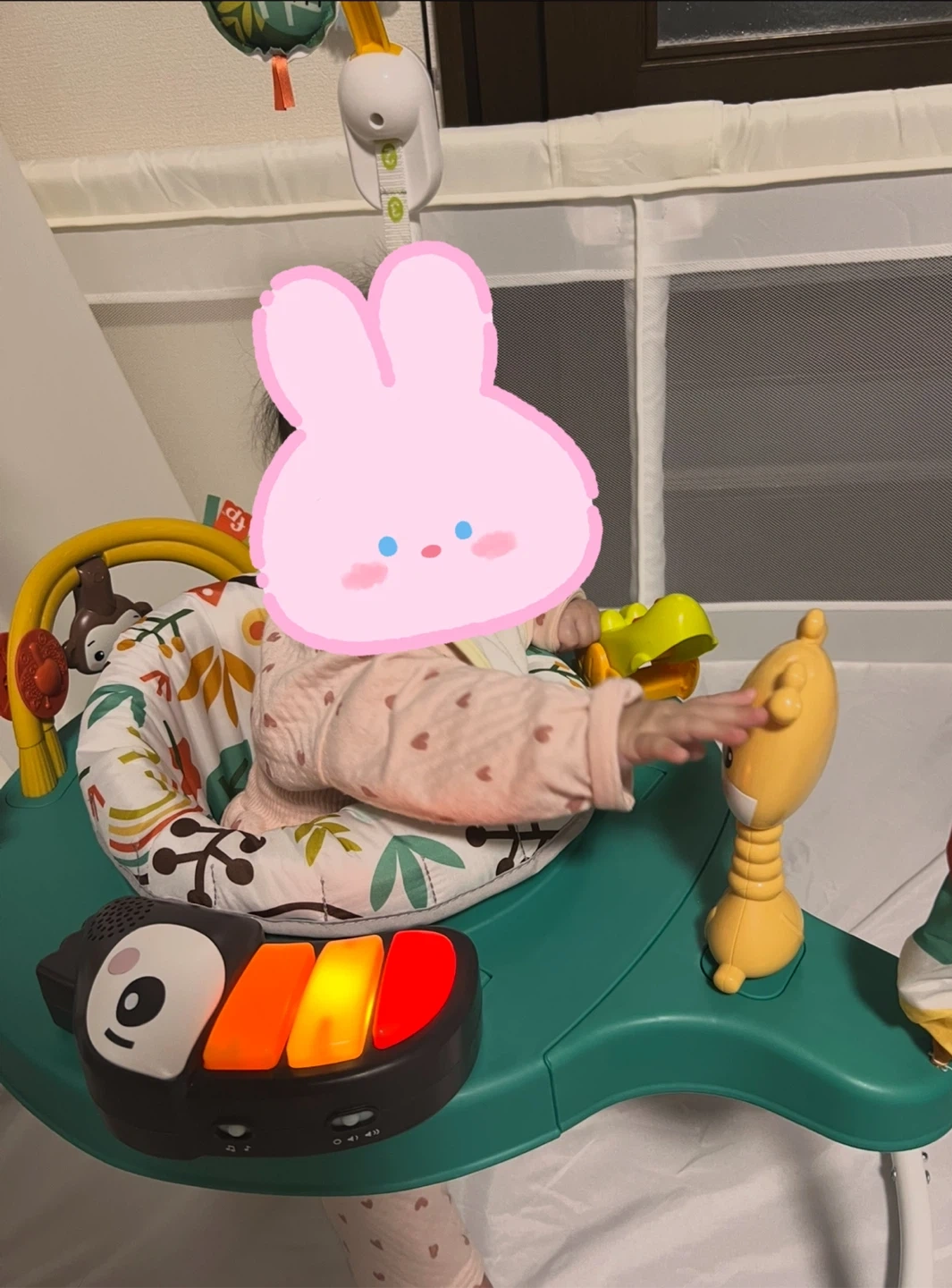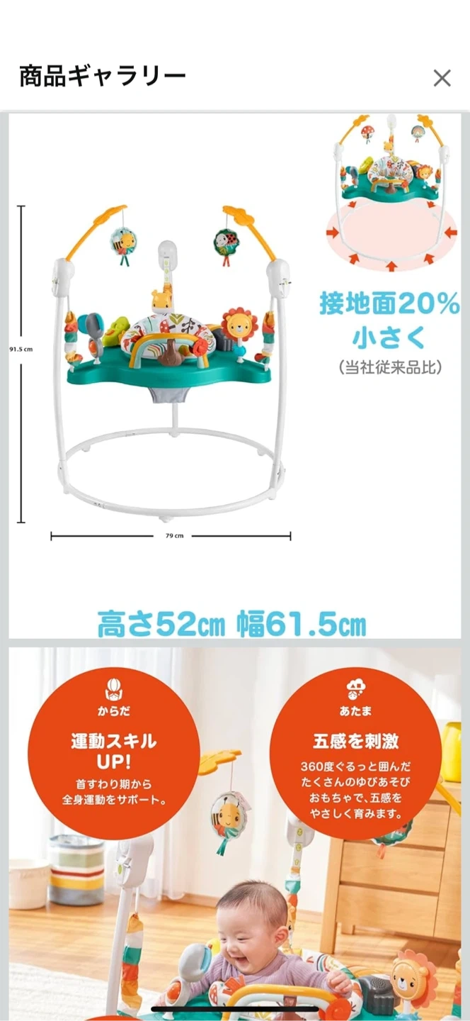 フィッシャープライスのジャンパルーです 【情報】 ブランド:フィッシャープライス 商品名:ゆかいなレインボーフォレスト ジャンパルー 【状態】 生後8ヶ月くらいの時に1ヶ月くらい使用して綺麗めですが、中古品になります🙇♀️ うちは大きめの子で体重がオーバーになりすぐ使えなくなってしまったのですが…本人は音楽が鳴ったり、おもちゃもたくさん付いててぴょんぴょんしながらとても楽しそうでした😆 【サイズ】 耐荷重:11.3kgまで 高さ52cm 幅61.5cm 使わなくなったので、どなたか使って下さる方にお譲りします✨