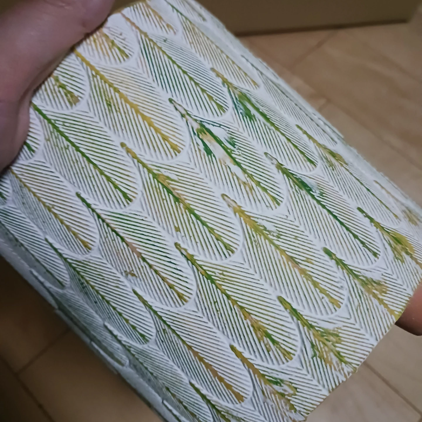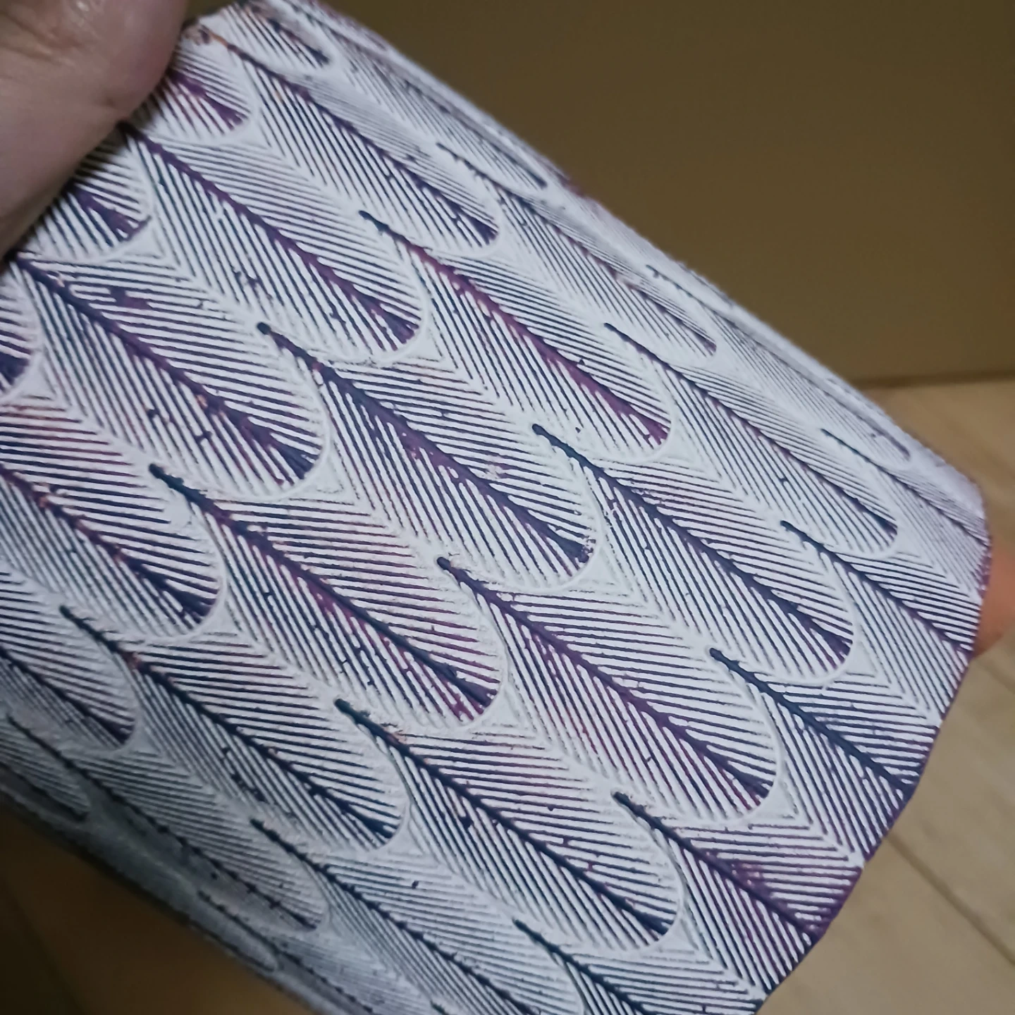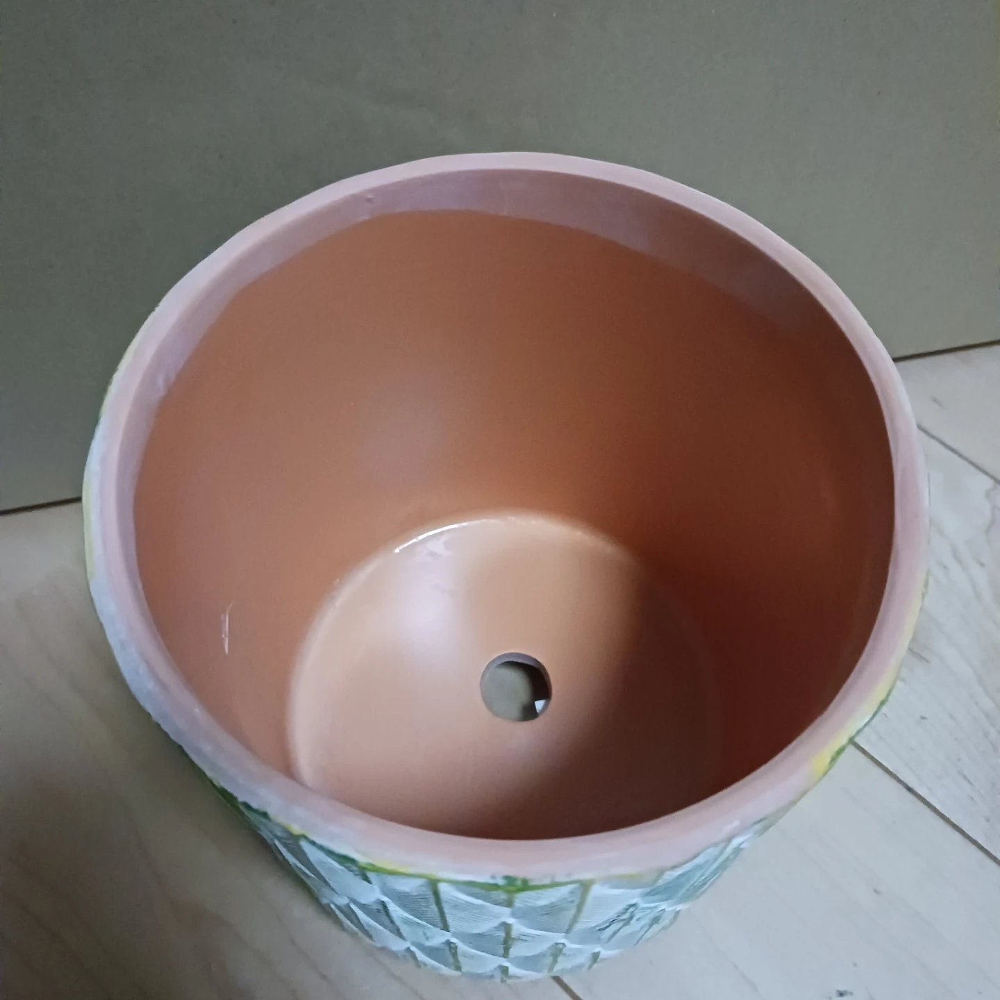 羽模様があしらわれた陶器鉢です。脚つきで見た目も良く、鉢底穴は小さいですが通気性のよい構造です。 サイズ:直径外寸13.5 内寸12cm 高さ14cm 素材:陶器 色:①グリーン、③パープル 鉢底裏にバーコードシールの一部あり