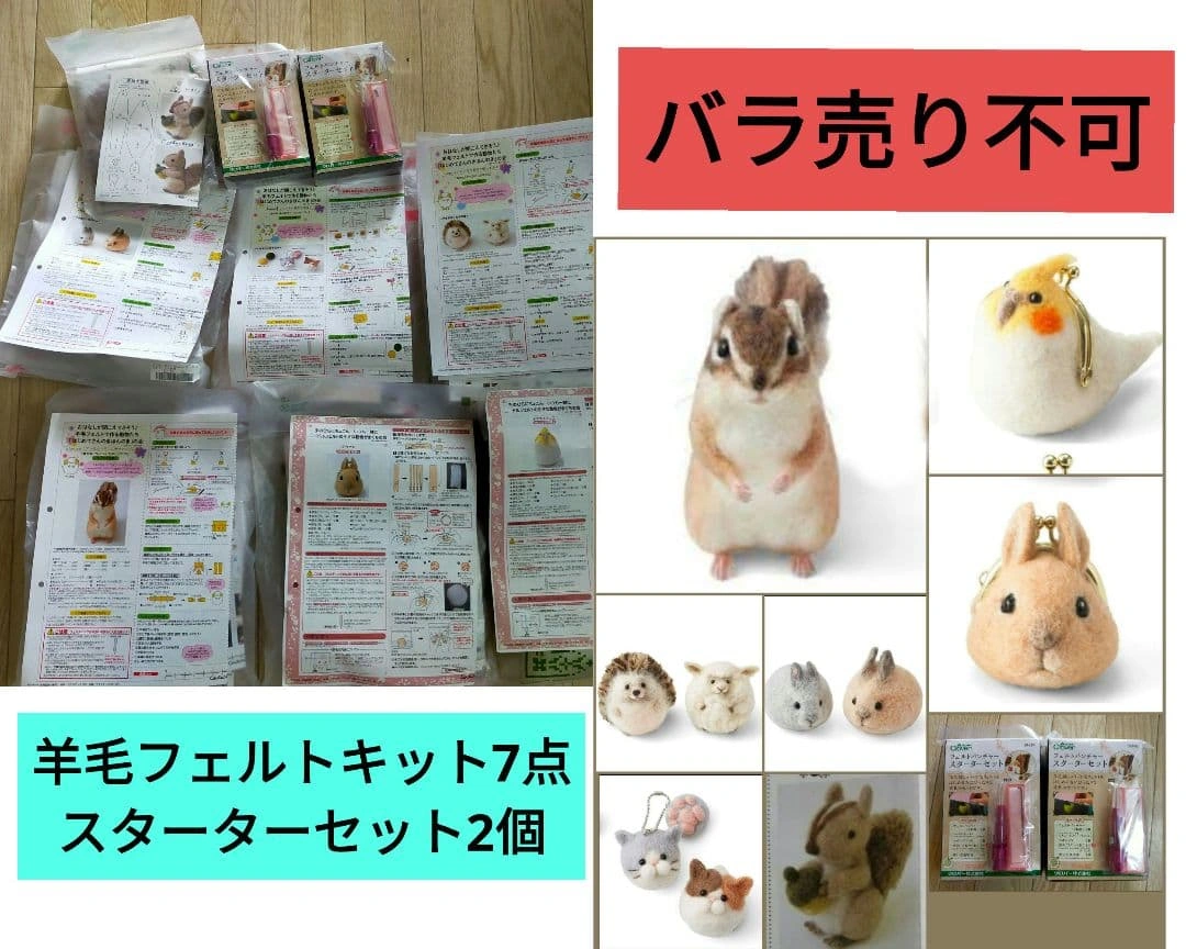 ※セットの場合バラ売り不可*値下げ不可※ ■羊毛フェルト7点&スターターセット2個セットまとめ売り ■フェリシモ・羊毛フェルト・ニードル ①シマリス ②ハリネズミ・ヒツジのセット ③うさぎ ④ネコ ⑤うさぎ・がま口 ⑥オカメインコ・がま口 ⑦りす ⑧スターターセット2個 撮影の為に開封しました。長期保管ですのでご理解ある方のみお願いします。 自宅保存の為、神経質の方や完璧を求める方は、ご購入はお控えください。 購入後イメージ違い等、言う方はお断りします。 ご希望の方はお気軽にご連絡ください。