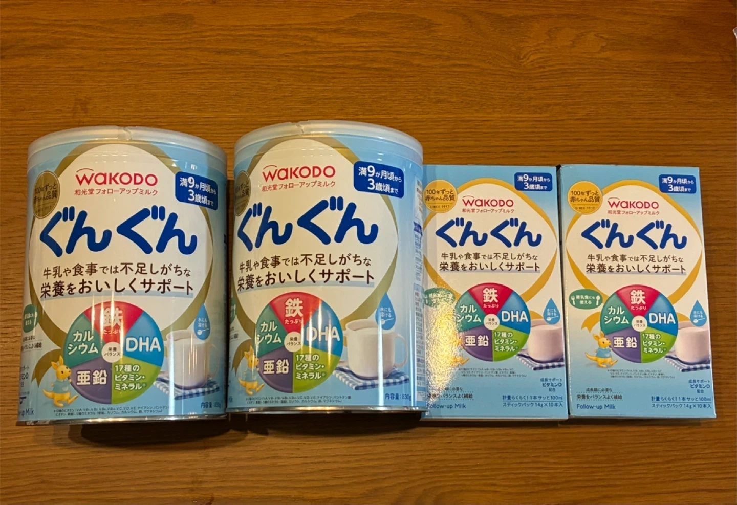 ※他サイトでも出品中なので、突如削除することがあります。 フォローアップミルク ぐんぐん 大缶とスティックパックのセットです。 子どもが卒業したため、出品いたします。 どちらも未使用、未開封で、自宅にて保管しておりました。 【商品の状態】未使用 【内容量】大缶(830g)×2、スティックパック(14g×10本)×2 賞味期限は画像ではわかりにくいですが、 大缶は2つとも2026年8月、スティックパックは2026年6月が1箱、2026年7月が1箱です。 取引場所は菅仙谷公園北東の角を希望しますが、自転車や車もありますのでご相談ください。 よろしくお願いいたします。