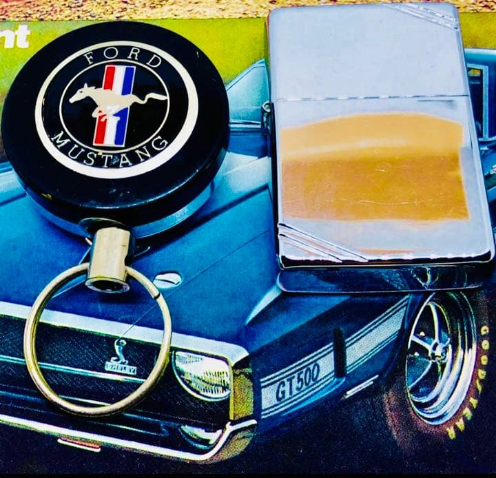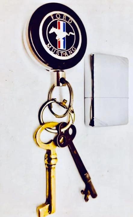 Ford フォードマスタングのキーバックリールです。 10数年前に米国Los Angelesにて購入しました。コレクターズアイテムです。 ベルトに取り付けるタイプで、伸ばすと約1m位の長さです。 1〜2回着用後、勿体ないので自宅に飾って保管していました。極小擦れがありますが、全体的にキレイです。 ライターと鍵は付きません。 ペットなし、禁煙環境でクリーン保管していました。 神経質な方はお控えください。 ご希望の方はお気軽にご連絡ください。