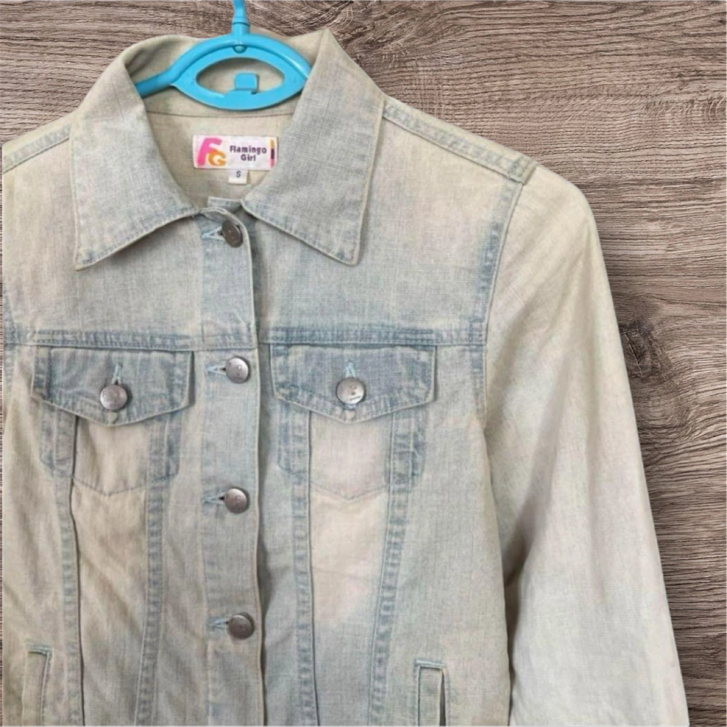 Flamingo Girl FG デニムジャケット アウター ☆レディース ☆長袖 ☆サイド…S 肩幅···36cm 身幅···39cm 袖丈···59cm 着丈···50cm ※採寸上、多少の誤差がありますのでご了承ください ♡良い感じの色褪せがヴィンテージ感を漂わせる 多少のシミや汚れ等ありますが、破れ等はなく、まだまだ着ていただけます! 他サイトでも出品中です。 他で売れた場合、急に削除しますので、ご了承ください