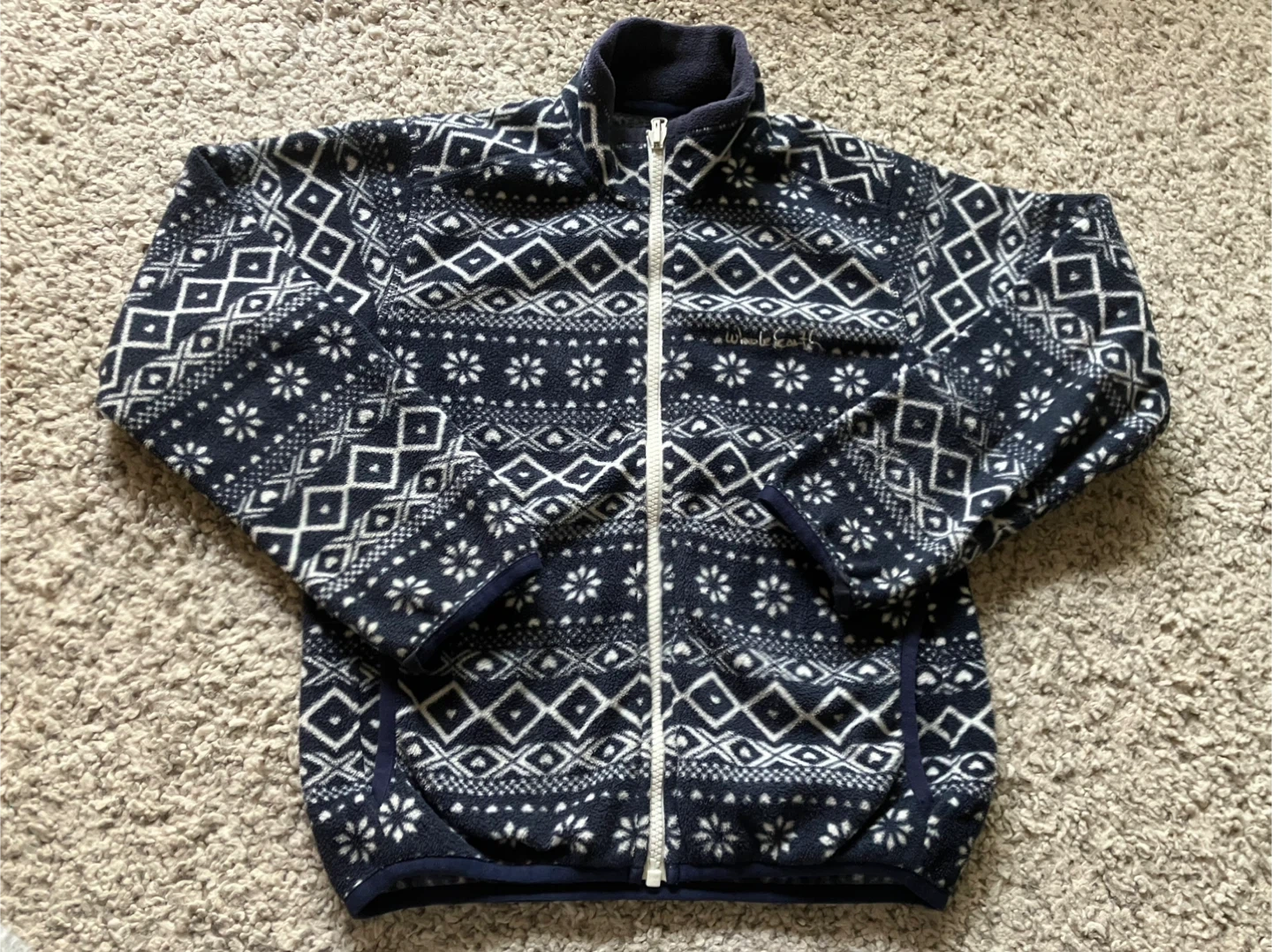 フリース ジップアップジャンパー 130センチ 北欧柄が可愛いです。 素材性質上、内側は毛玉のように見える箇所がありますが、まだまだ問題なく着ていただけます。 薄手で、とても暖かいので、コートの下などこれからの季節にいかがでしょうか?