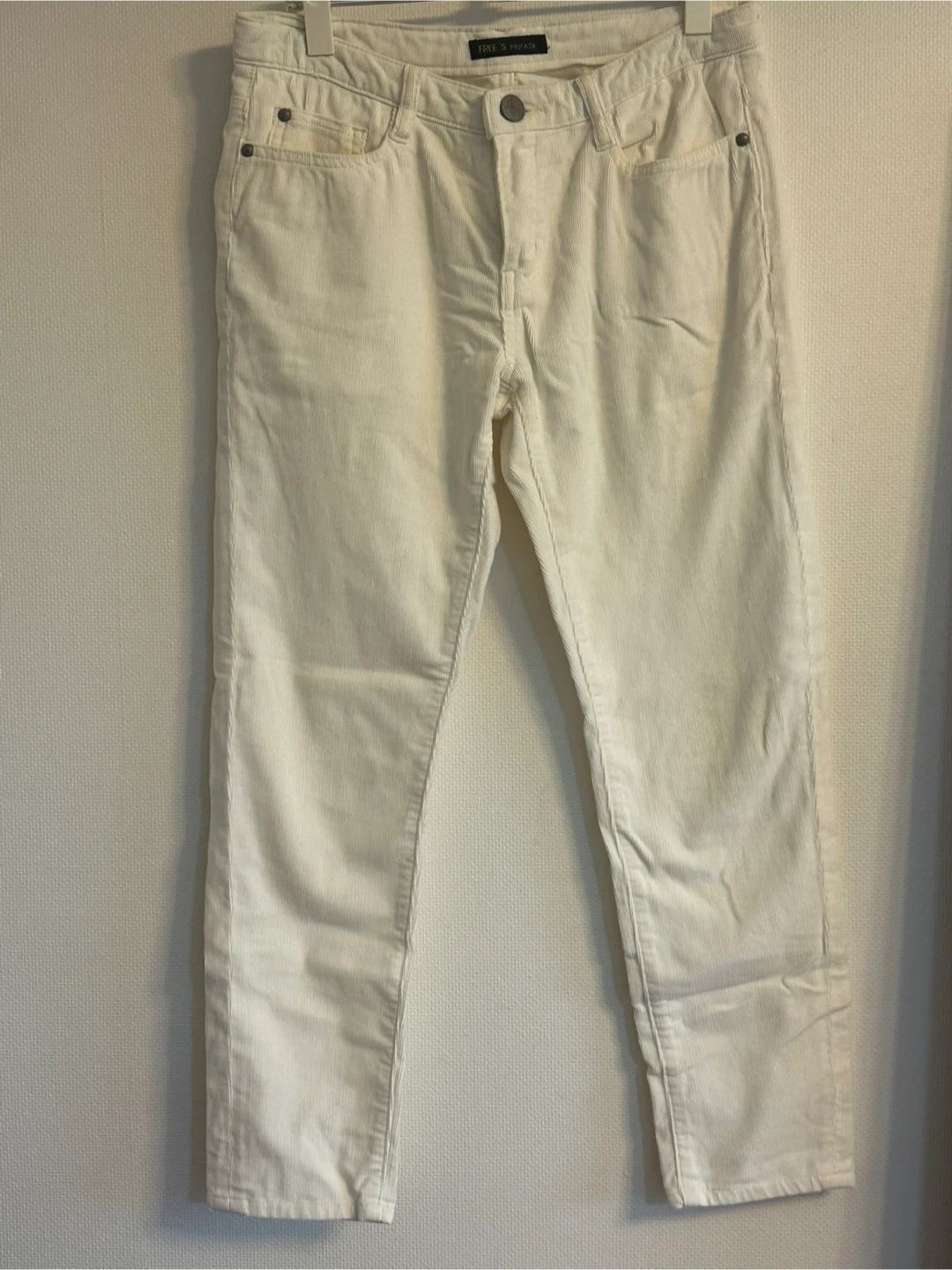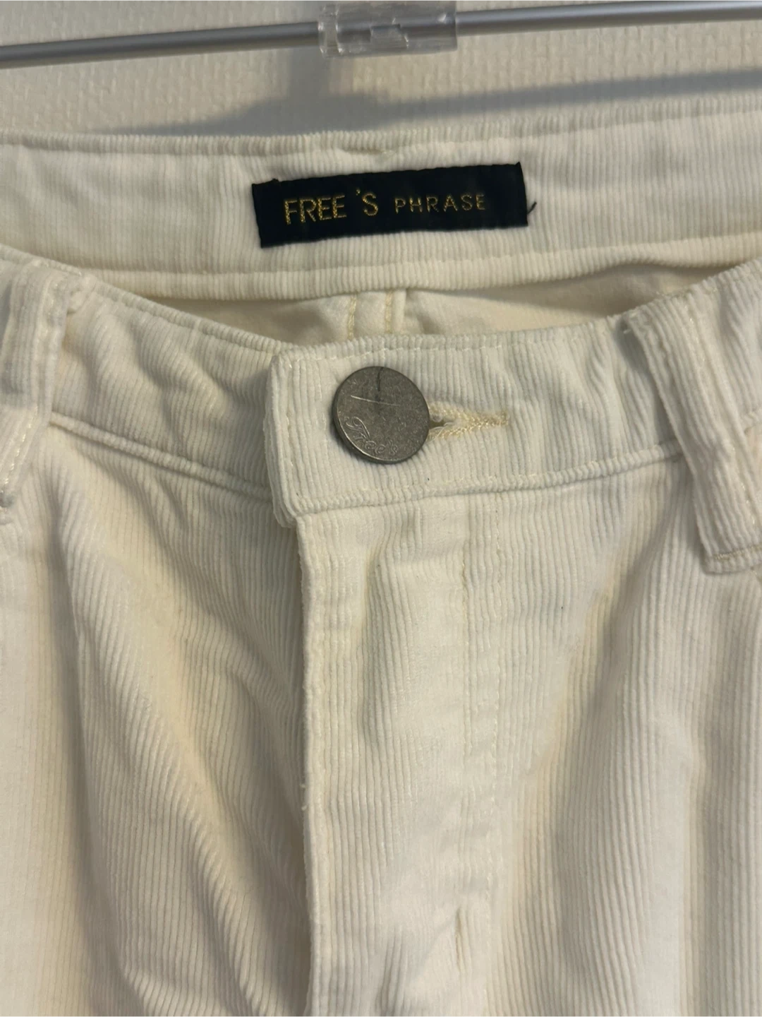 フリーズフレーズの細身パンツです。 コーデュロイでストレッチがきいてるので履き心地がとてもいいです。 ・ブランド:フリーズフレーズ ・サイズ:S ・素材:コットン98%、ポリウレタン2% ・色:オフホワイト 中古品であることをご了承ください。