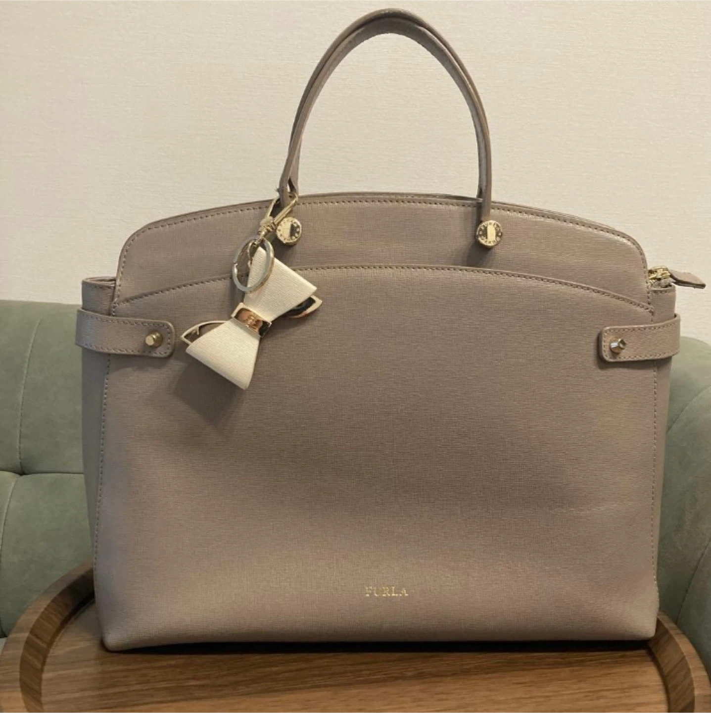 フルラ グレー ハンドバッグ リボンチャーム付き