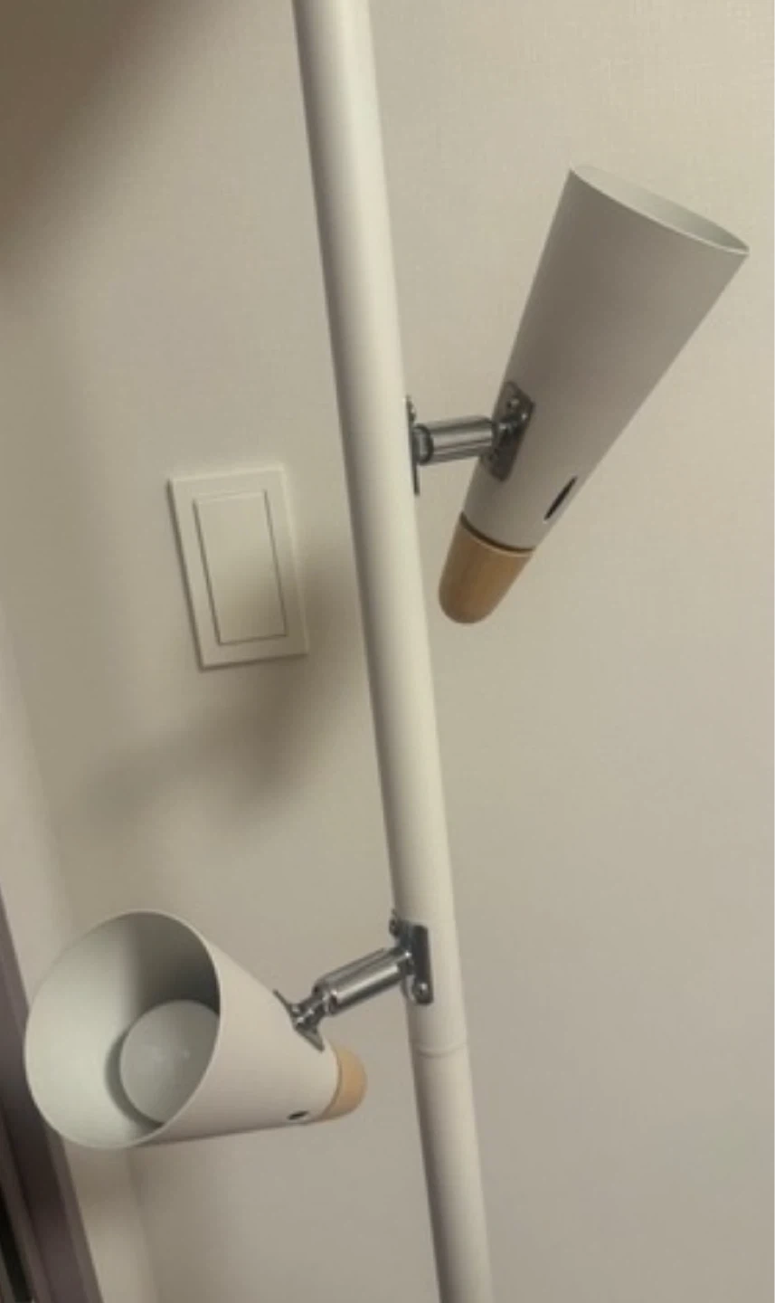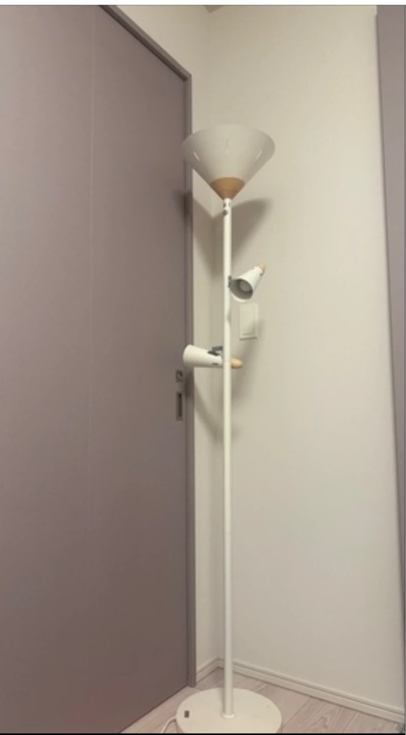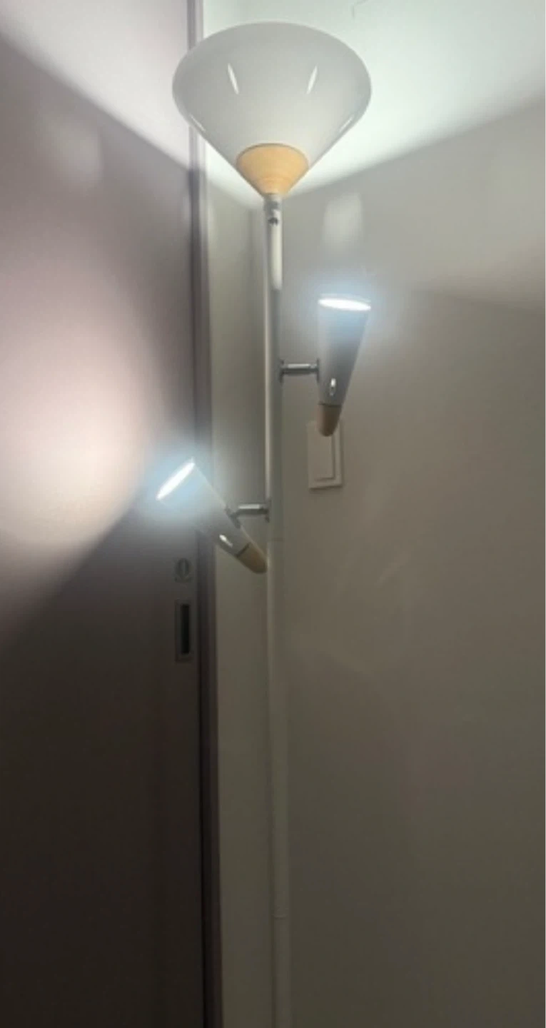 フロアライトです。 【情報】 型番:BBF-018 POINT1 光のコントラストを愉しめる、リラックス空間に 光の陰影を表現しやすいフロアライトです。 陰影のある空間で穏やかな時間をお過ごしください。 POINT2 角度調整で自由度の高いライティング 2灯のスポットライトは左右約350度、上下約90度まで角度調整が可能です。 POINT3 3灯それぞれで点灯切替が可能 それぞれのスイッチでシーンに合わせて点灯切替が可能です。 POINT4 暗めの空間への補助照明として フロアライトの中でも高さのある照明です。さらにアッパーライトによって、 高い位置から天井や壁を照らすことができるため、 明るくて解放感のある立体的な空間づくりをお手伝いします。 アッパーライト部/口金E26×1 60Wまで対応(電球別売り) スポットライト部/口金E17×2 40Wまで対応(電球別売り) 点灯切替スイッチ×3 スポット部2灯の角度調整(左右約350度・上下約90度) フットスイッチ(ベースの根本から約500mmの位置にあり) LED電球対応 商品サイズ 本体サイズ/横幅295×奥行295×高さ1685(mm) アッパー部シェードサイズ/横幅295×奥行295×高さ109(mm) スポットライト部シェードサイズ/横幅72×奥行72×高さ190(mm) ベースサイズ/横幅280×奥行280×高さ30(mm) 電源コード長/2000(mm) 重量 約6(kg) 材質 スチール / ウッド(オーク) 元値:13000円弱 【状態】 多少の使用感はありますが、目立った傷はありません。 ご不明点があればお気軽にお尋ねください。