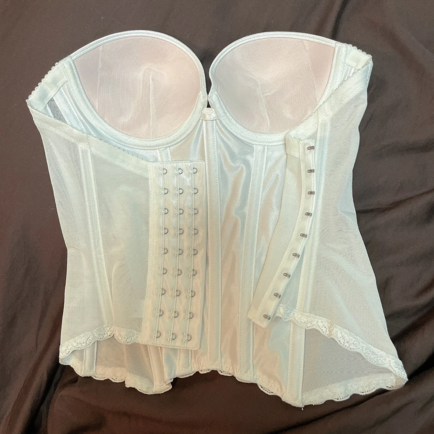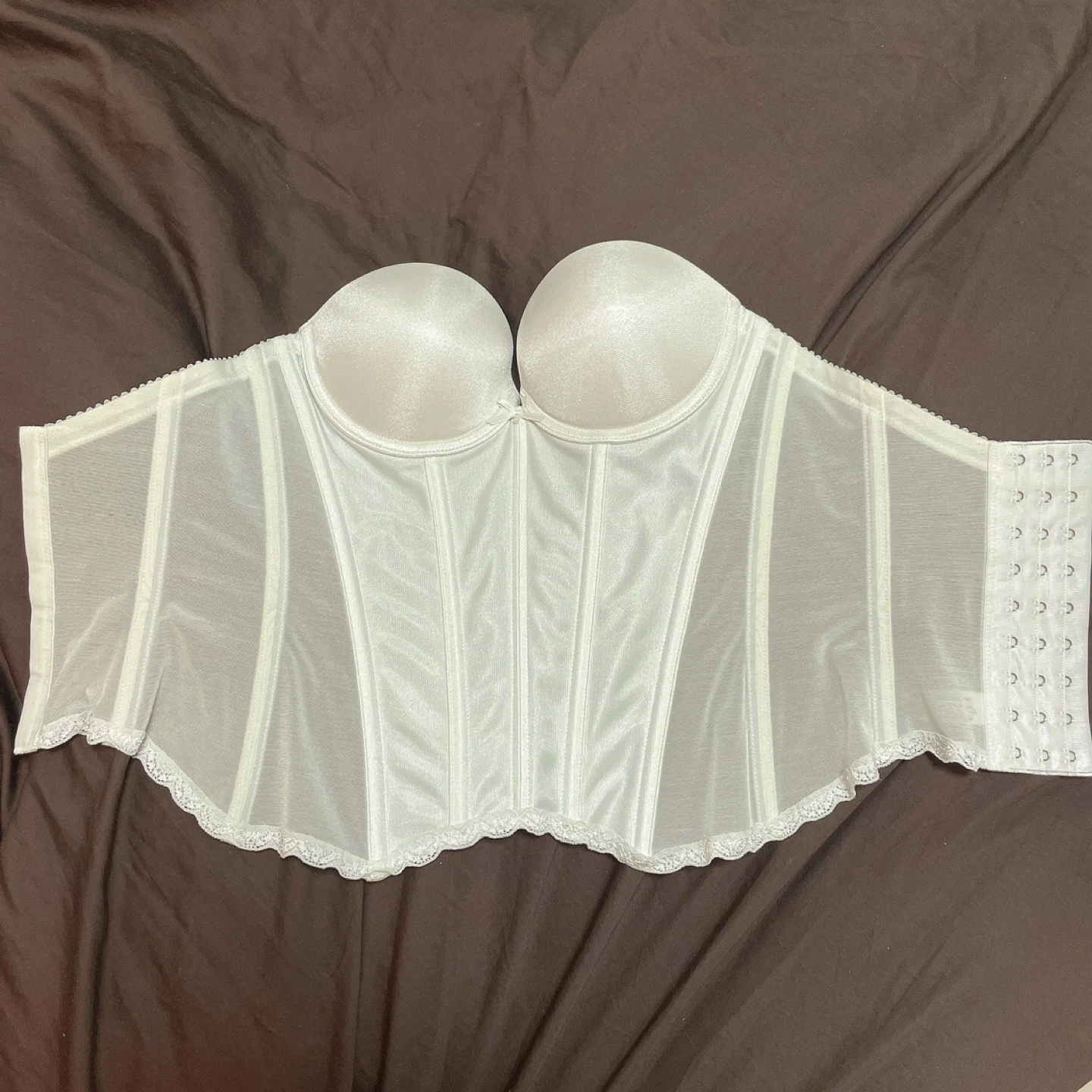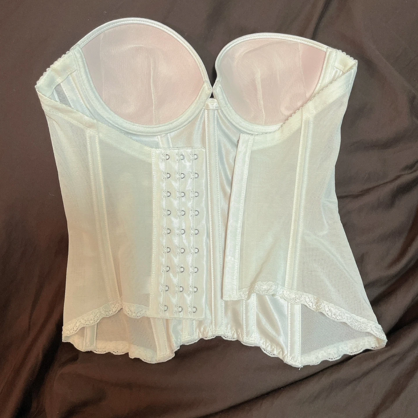 ブライダルインナー theD クラウディア ロングラインブラ 美フォルム  シンプルなブライダルインナーです。 2024年に購入し、一度使用しました。 結婚式で数時間のみの使用で、手洗いしました。 汚れなどもございませんが神経質な方はお控えください。 しっかり補正してくれますが、全く苦しくありせんでした。サイズ調整はホックで3段階です。 背中も開きが広いのでどんなドレスでも安心です。 カラーはオフホワイトです。 サイズ C65 定価 23980円 種類···ビスチェ ★他にも商品を出品しておりますので、まとめてのご購入も歓迎です。 商品説明 ボディの引き締め、着心地、姿勢補正と全ての効果を兼ね備えたビスチェ 背面のホールド力が高く、着用すると肩位置が下がり、デコルテ、脇、二の腕、背中がすっきりします 超立体設計でボディラインを美しくするだけでなく、座る、お辞儀の動作でも身体にフィットします ウエストより下部が長く(ロングライン)下腹部の補正と腰サポート力に優れます 日本人のバストを研究し開発した3Dモールドカップがバストを美しくメイクし、高い位置にホールドします 弾力に優れた素材を皮膚に張りつくように設計し、どんな姿勢や動作でもずれにくくしました 結婚式 花嫁 新婦 ウェディングドレス 挙式 披露宴 パーティ