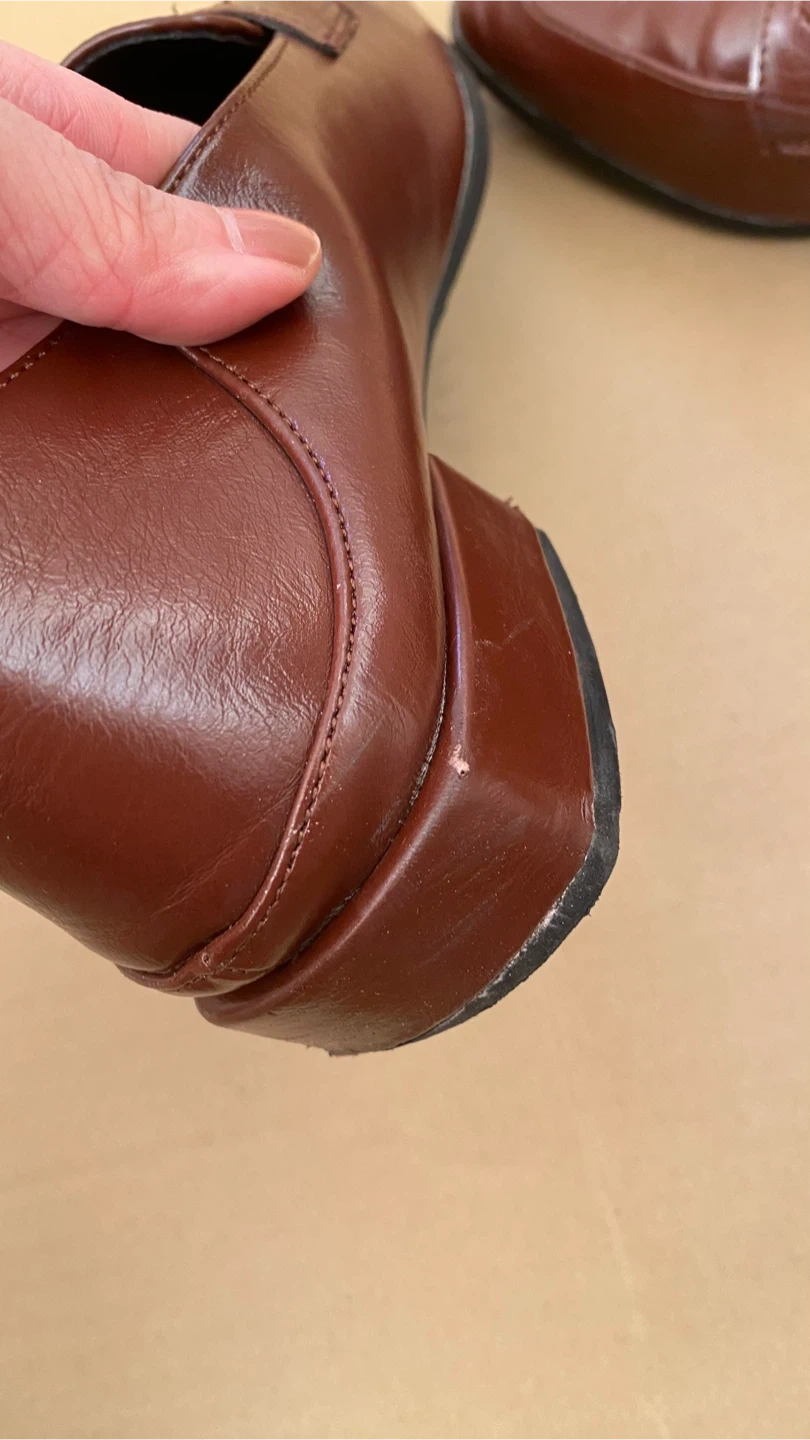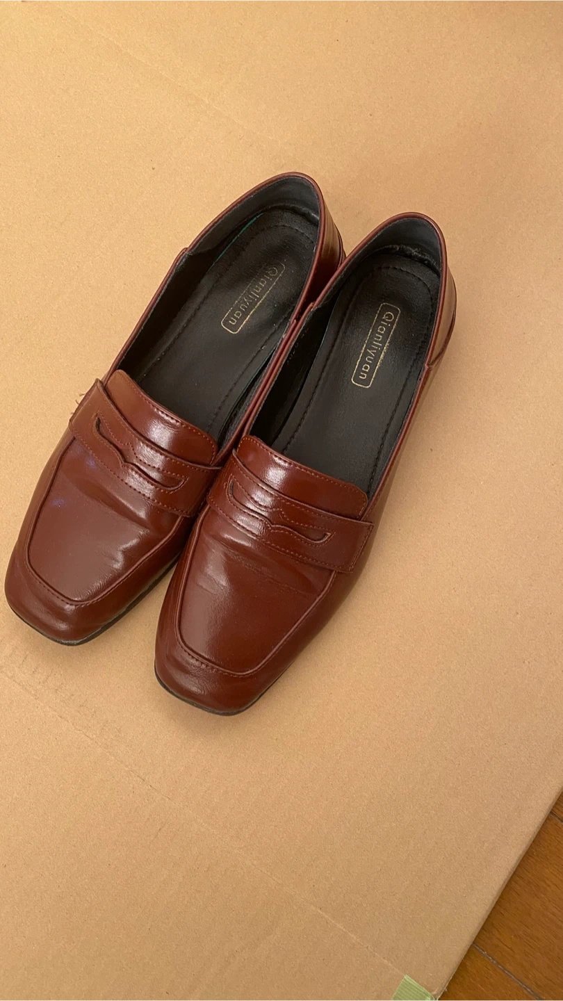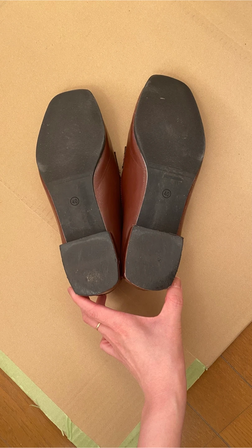 ブラウンのローファーです。 柔らかい合皮素材でとても歩きやすく、約1年半ほど使用しました。 引っ越しのため出品いたします。 かかとも低めで安定感があり、通勤やお出かけにもぴったりです。 【サイズ】25cm(表記:40) 【カラー】ブラウン 【状態】多少の使用感と小さな擦れがありますが、全体的にきれいな状態です。 靴底の減りも少なく、まだまだお使いいただけます。