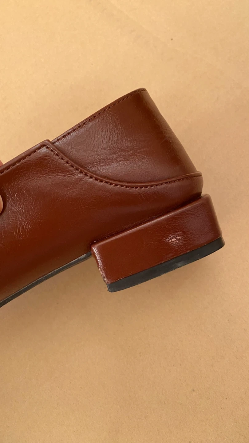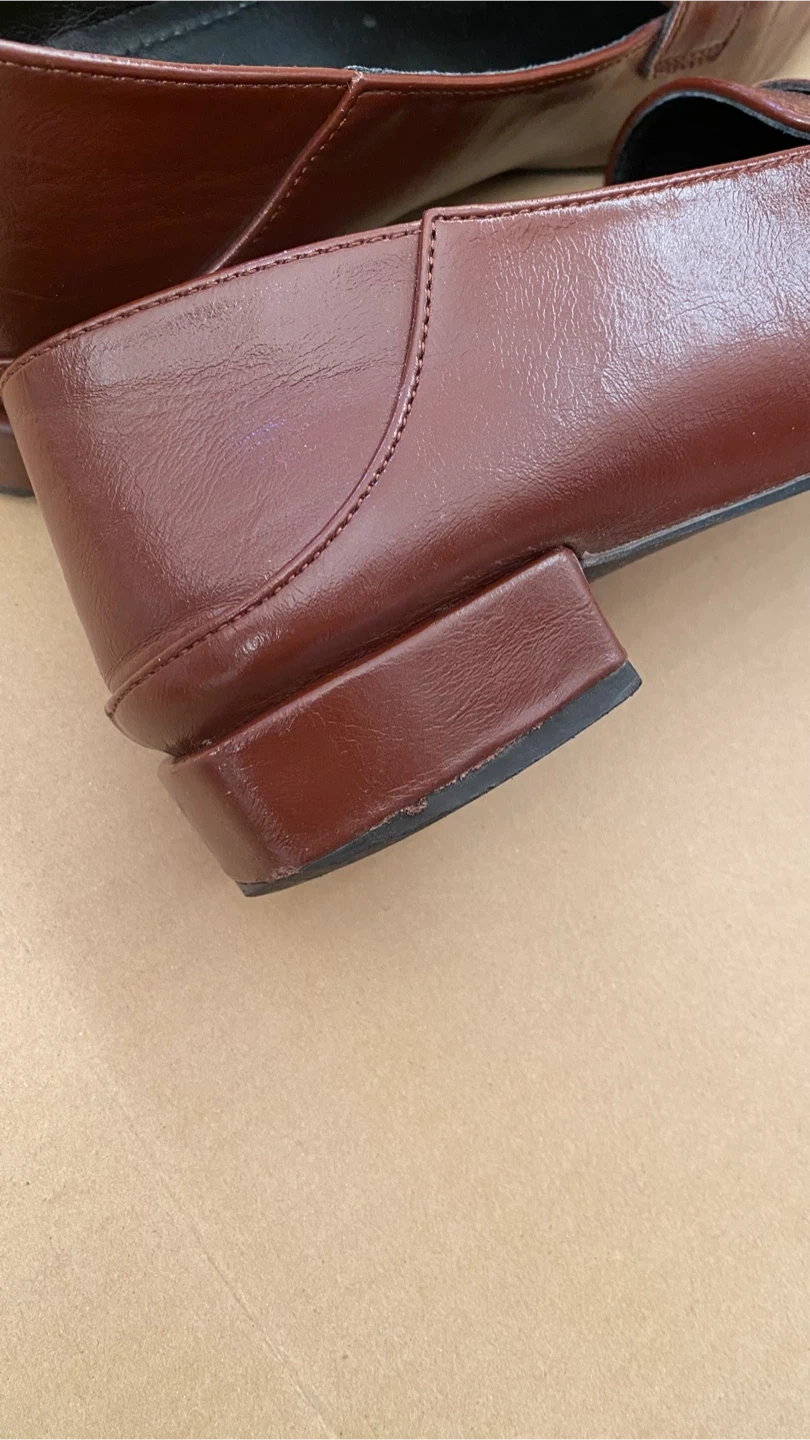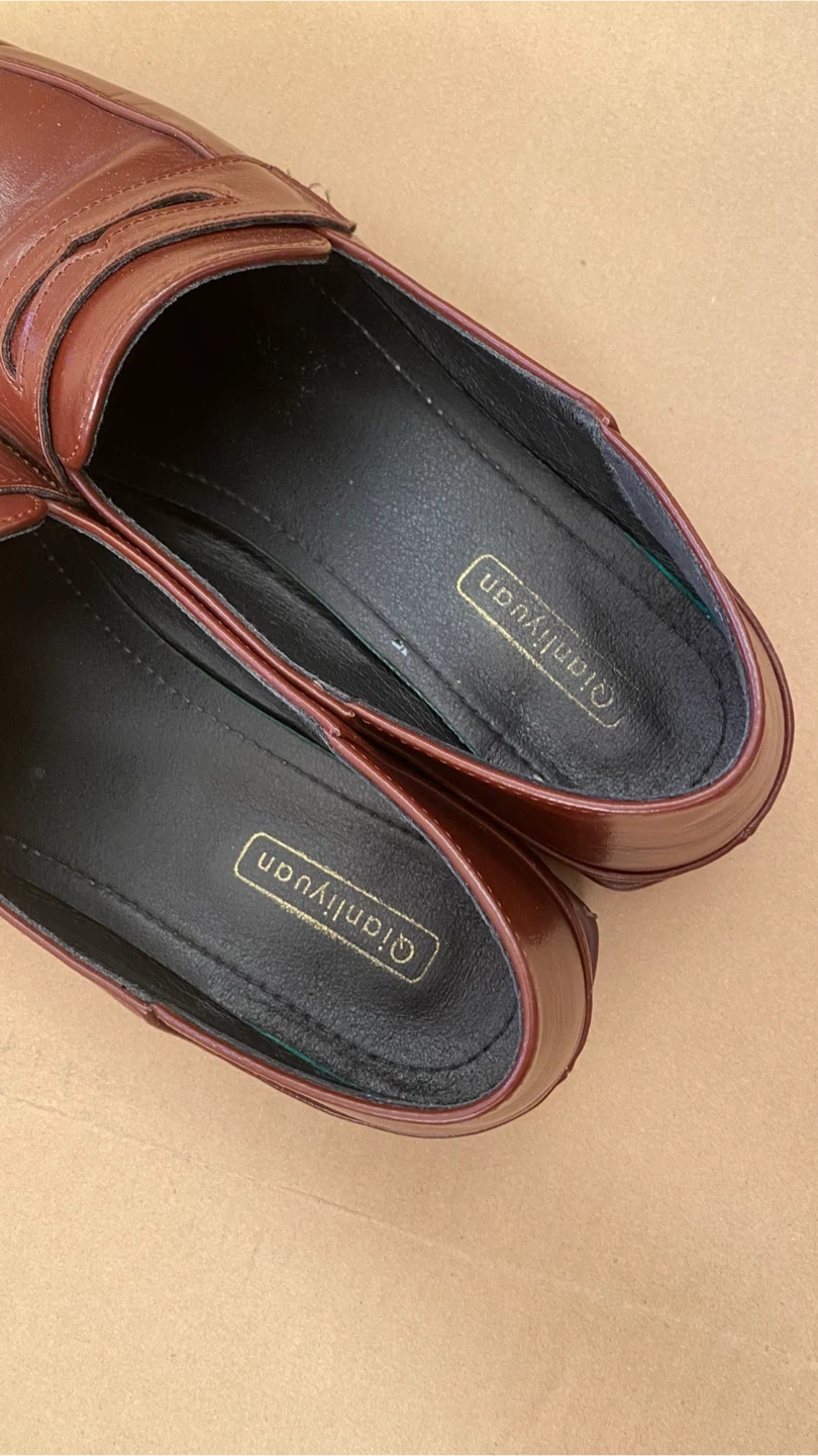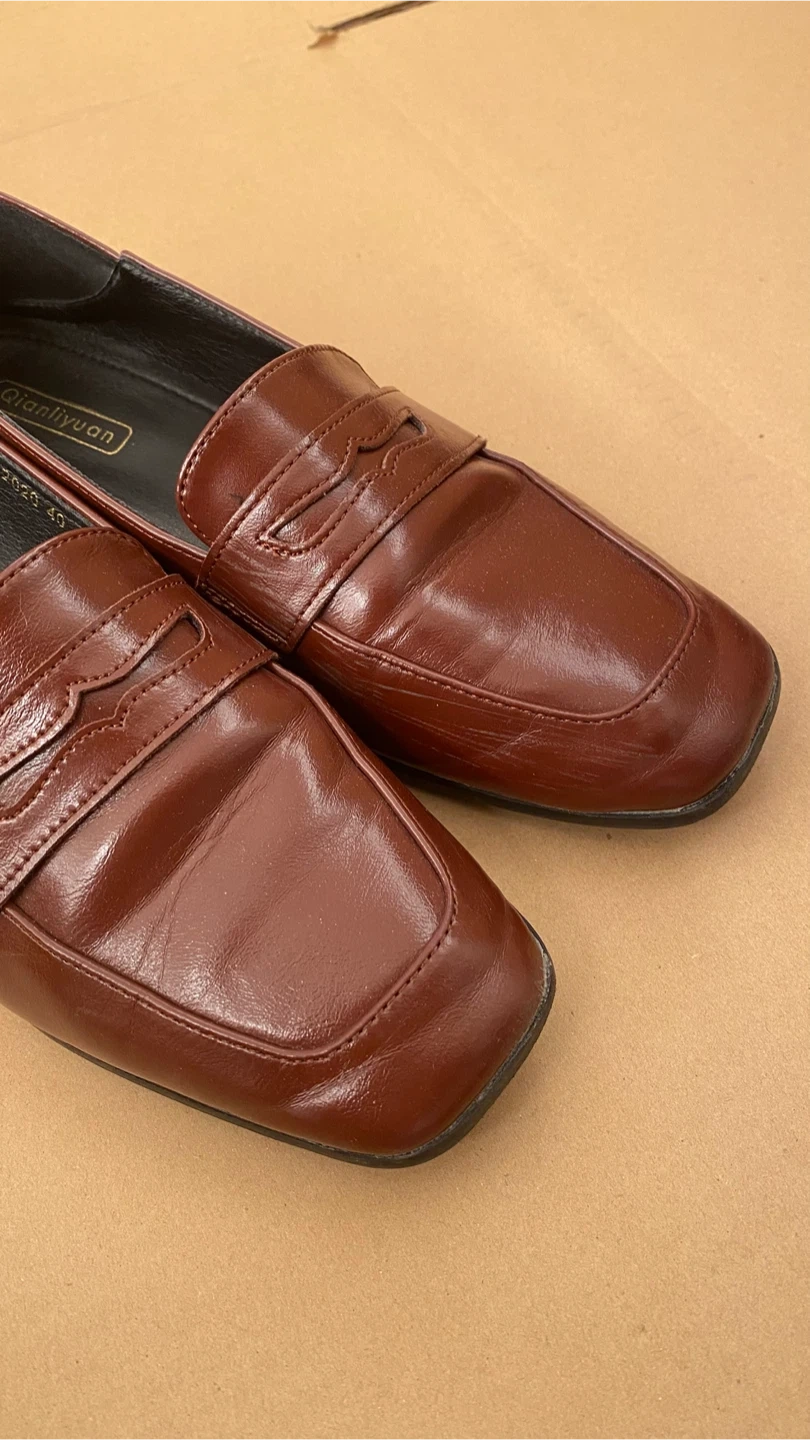 ブラウンのローファーです。 柔らかい合皮素材でとても歩きやすく、約1年半ほど使用しました。 引っ越しのため出品いたします。 かかとも低めで安定感があり、通勤やお出かけにもぴったりです。 【サイズ】25cm(表記:40) 【カラー】ブラウン 【状態】多少の使用感と小さな擦れがありますが、全体的にきれいな状態です。 靴底の減りも少なく、まだまだお使いいただけます。
